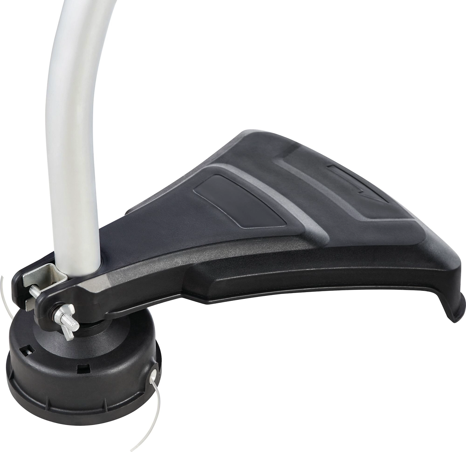 - Для защиты пользователя от грязи и травы, вылетающих из-под лески, предусмотрен пластиковый кожух.