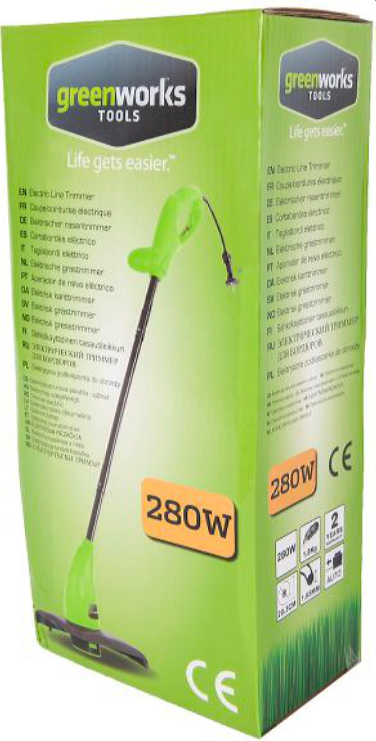 Триммер электрический GREENWORKS GST2830 мощностью 280W - малая компактная модель триммера, предназначенная для кошения травы и мягкой поросли.