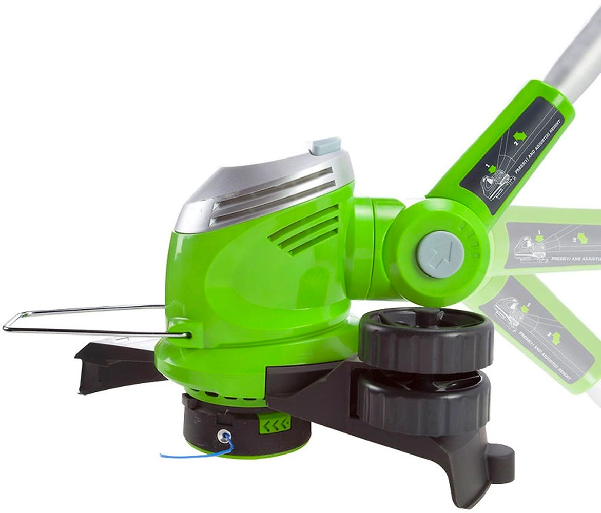 - Поворотная режущая головка позволяет без труда подрезать кромки, подравнивать дорожки.