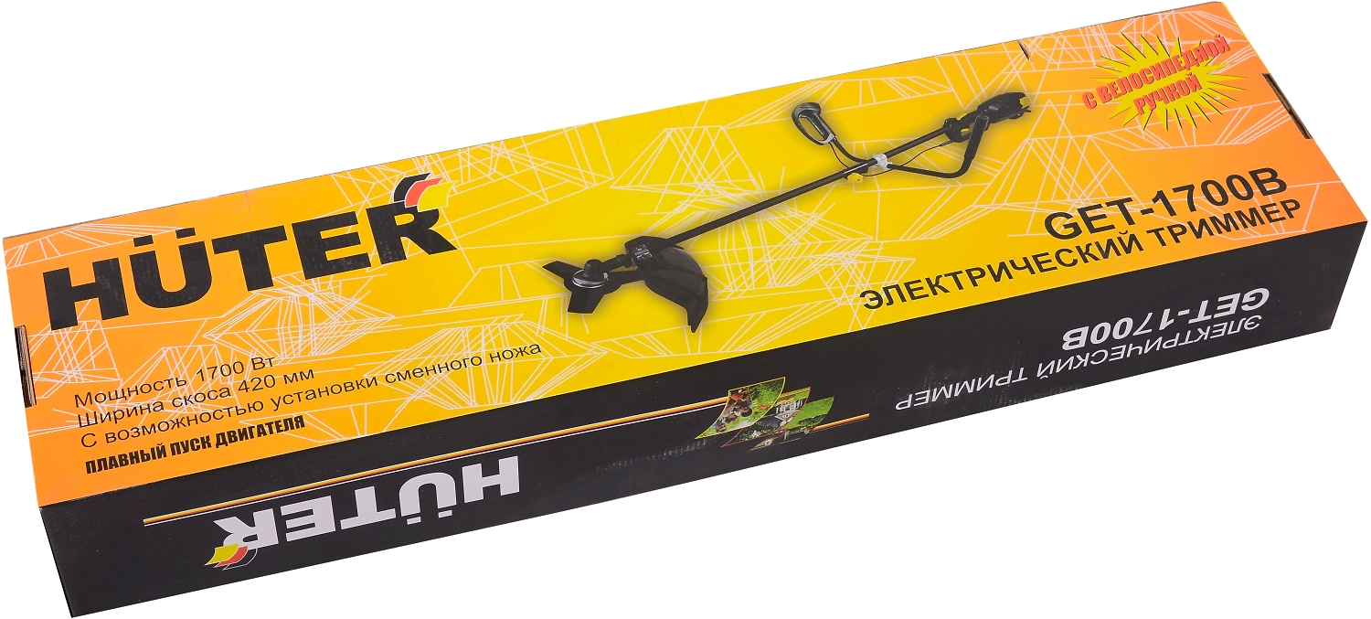 Электрический триммер Huter GET-1700B – этот садовый инструмент используется для срезания молодой и многолетней травы, поросли кустарника и сухостоя. Модель имеет самый мощный двигатель в линейке - 1,7 кВт с воздушным охлаждением. Частота вращения - 8000 об/мин.