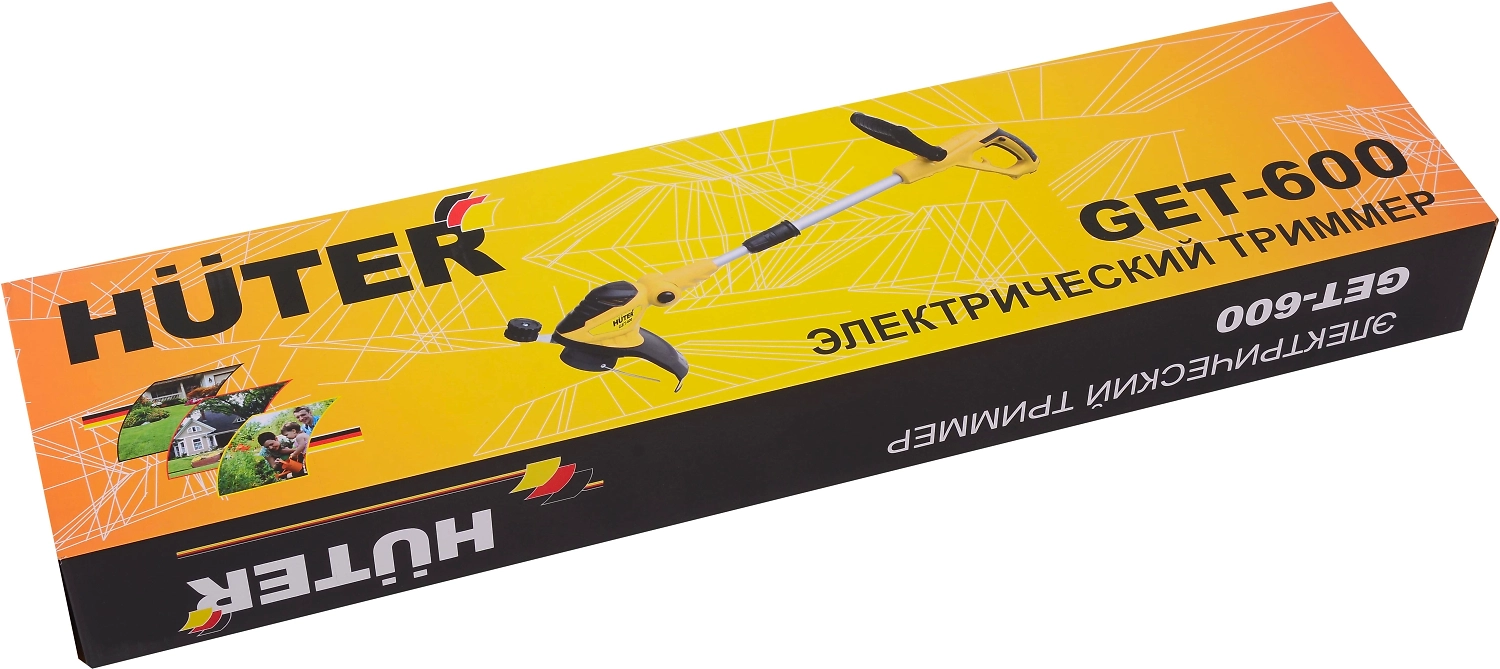 HUTER GET-600 — простой в использовании и лёгкий электрический триммер, предназначенный для кошения мягкой травы на приусадебных участках, газонах, клумбах.