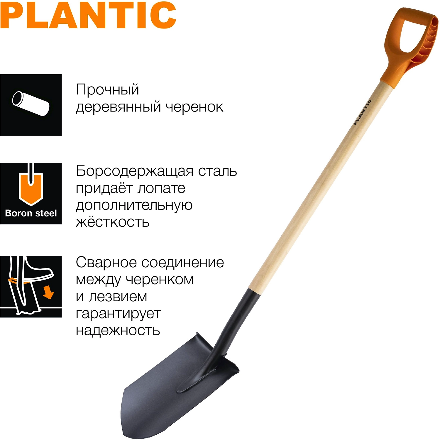 Заточенное лезвие из закаленной стали позволяет легко копать и перерезать корни. Деревянный черенок. Сварное соединение между лезвиям и черенком обеспечивает надежность.