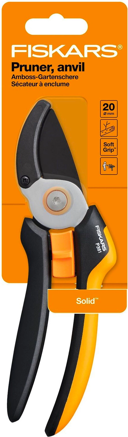 FISKARS Solid P361 - легкий и компактный секатор для обрезки сухих веток деревьев, кустарников, ухода за садом.