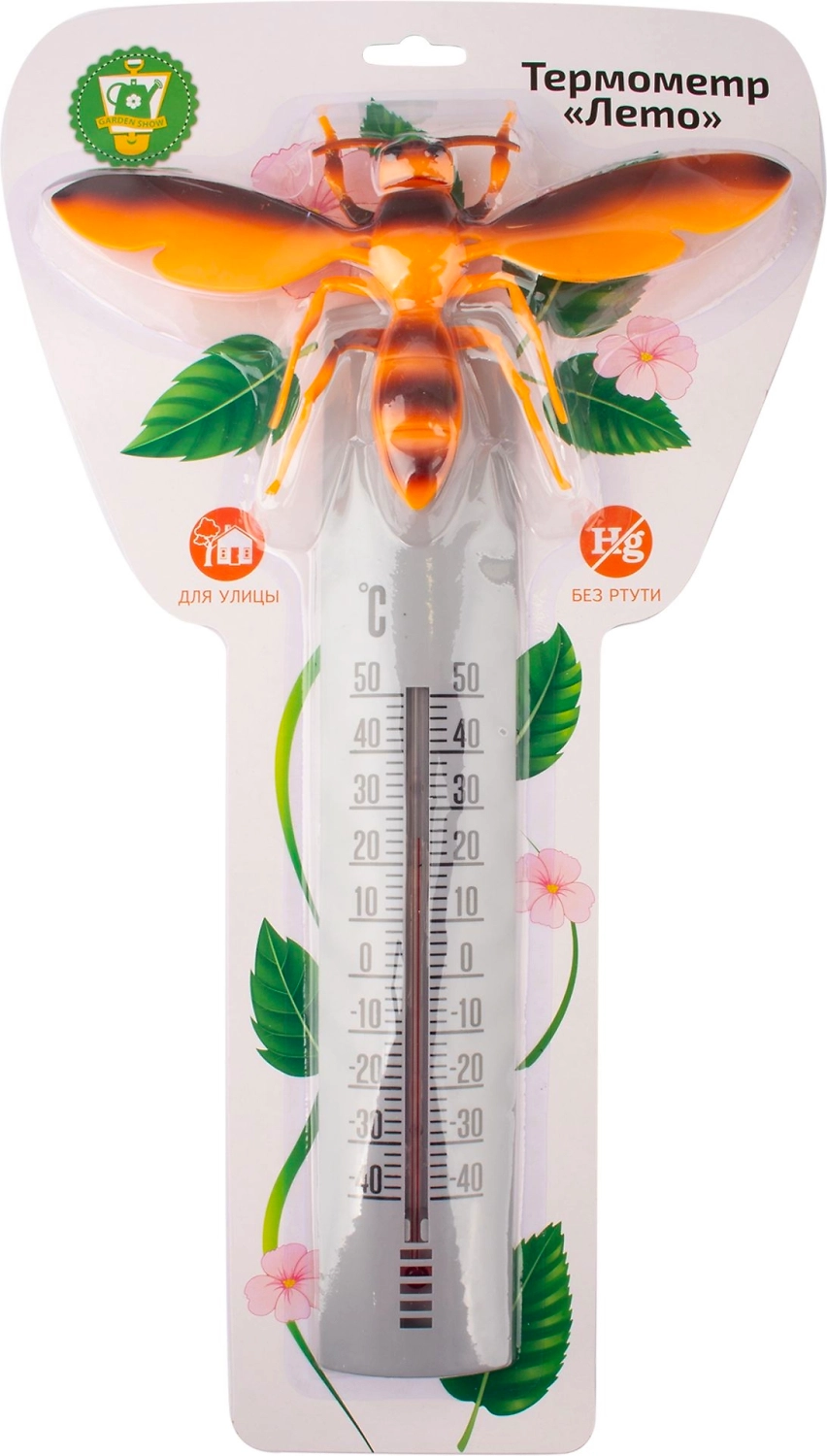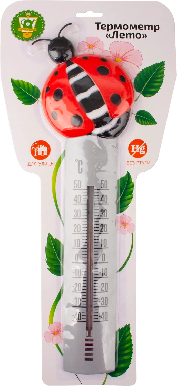 Уличный термометр «Лето» ТМ «Garden Show» предназначен для измерения температуры воздуха на улице. Изделие имеет широкий рабочий диапазон температур от -40 до +50 °С со шкалой деления в 10 °С. Цена деления составляет 2 °С. Крепление термометра находится с задней стороны корпуса. При загрязнении термометр легко можно снять и протереть влажной тканью. Термометр «Лето» - полезное украшение для дачи и сада.