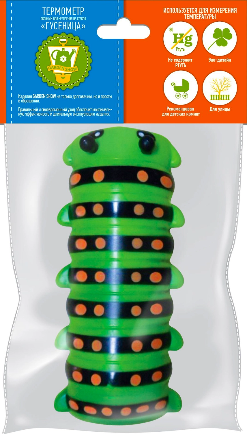 Термометр жидкостный GARDEN SHOW Гусеница оконный 21,8x9,8 см