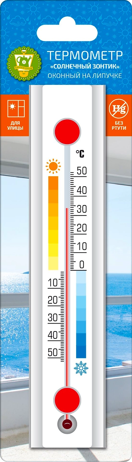 Термометр жидкостный GARDEN SHOW Солнечный зонтик оконный 10х27 см
