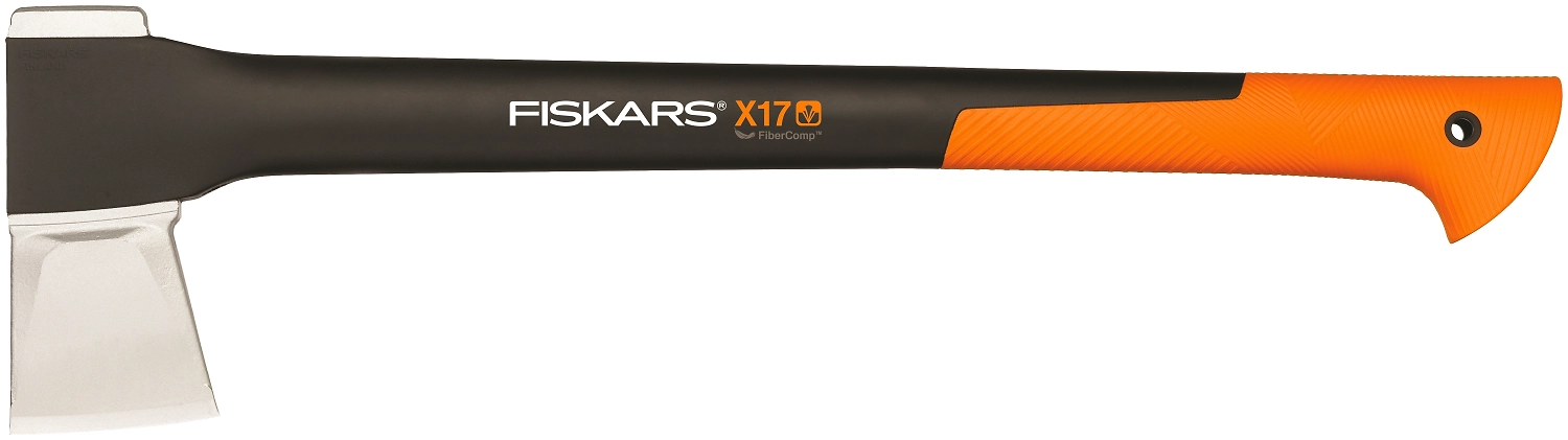 FISKARS X17 - удобный топор для раскалывания поленьев среднего размера.