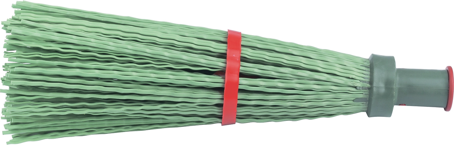 Полипропиленовая метла предназначена для уборки на улице. Изготовлена из пластика, благодаря чему имеет небольшой вес. Черенок метлы выполнена из натурального дерева. Рабочая часть метлы круглая.