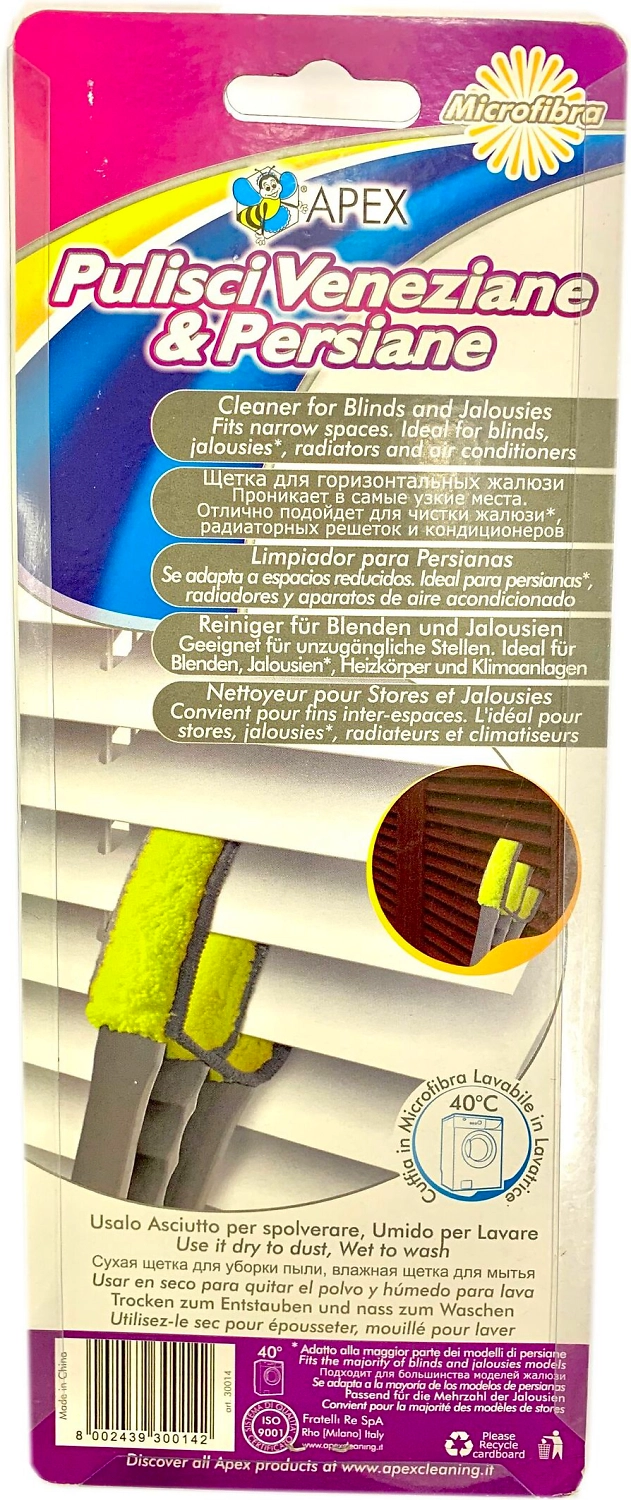 Щетка для чистки жалюзи с тканью из микроволокна APEX. Предназначенный для обслуживания жалюзи, ставней, обогревателей и кондиционеров.