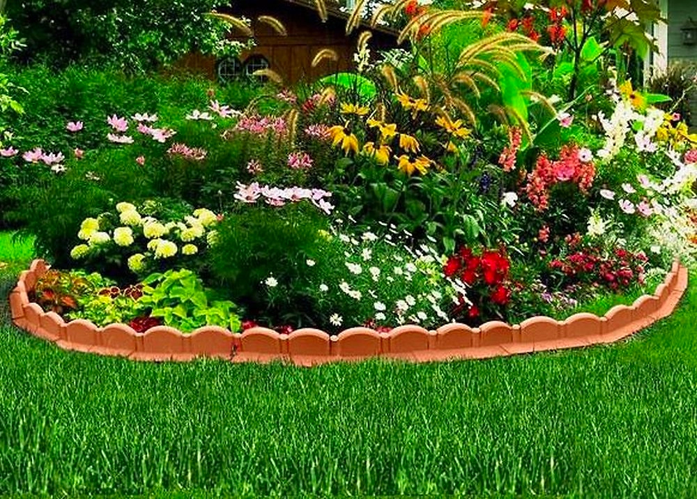 С помощью бордюра можно оформить цветочную клумбу, декоративный пригорок и другой садовый декор.