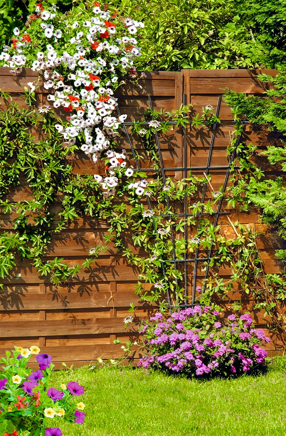 Металлическая шпалера OBI придаст вашим стенам и фасаду неповторимый шарм, изысканность и красоту. Шпалера без проблем крепится к стене с помощью входящего в комплект крепежа. Подходит для роз, вьюнков и горошка. Нержавеющий погодостойкий металл имеет пластиковое покрытие, продлевающее срок его службы.