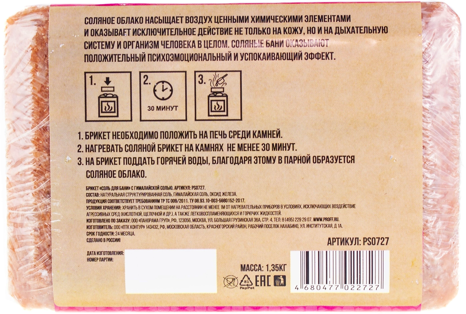 Брикет «Соль для бани» с гималайской солью" 1,35 кг