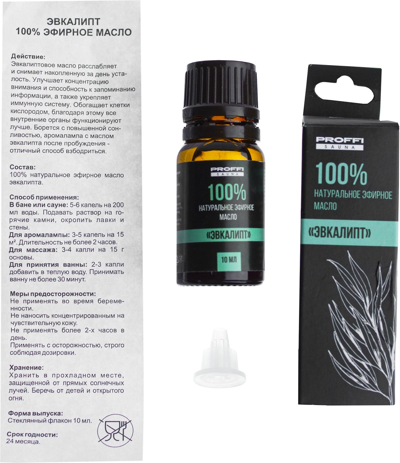 100% натуральное эфирное масло Эвкалипт с капельным дозатором.