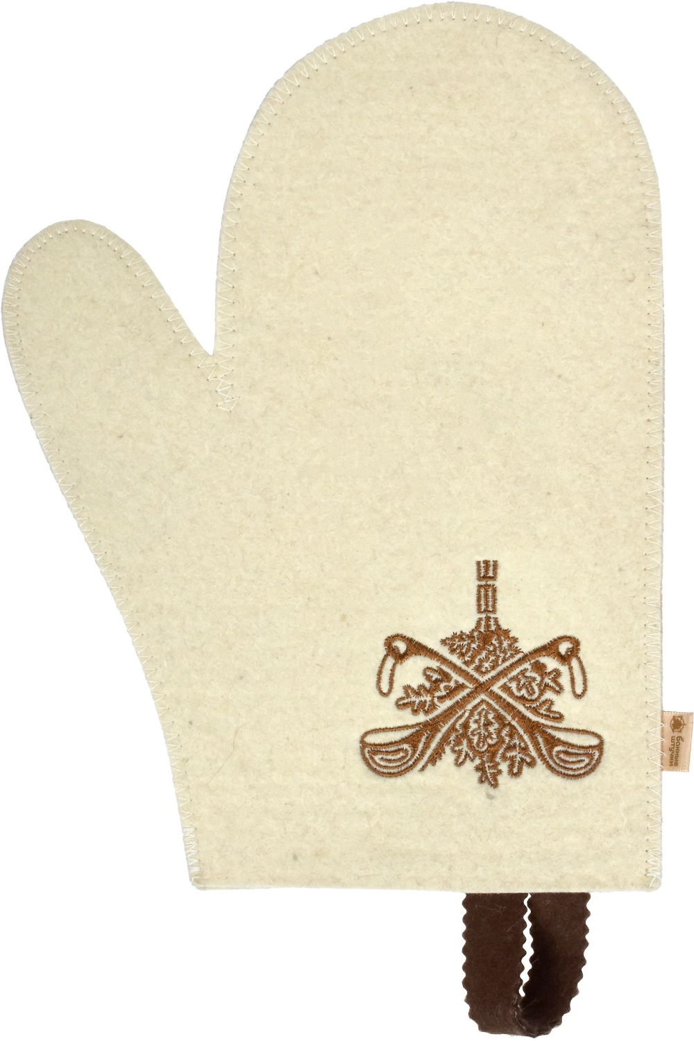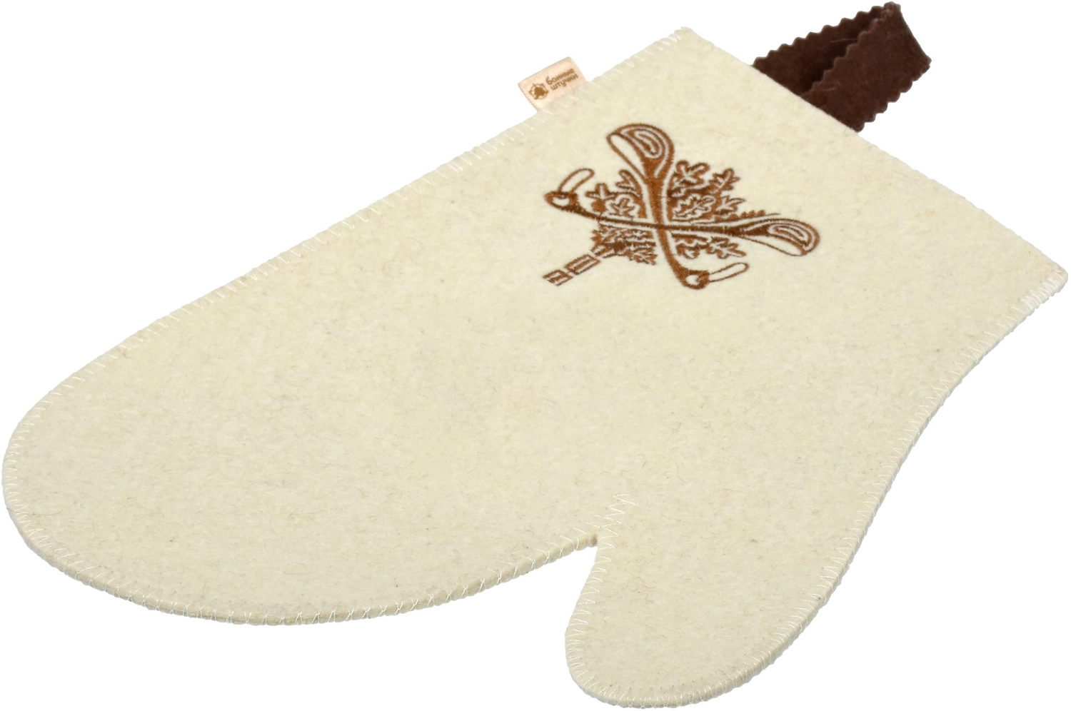 Рукавица для сауны белая с вышитым логотипом "Банные Штучки", войлок