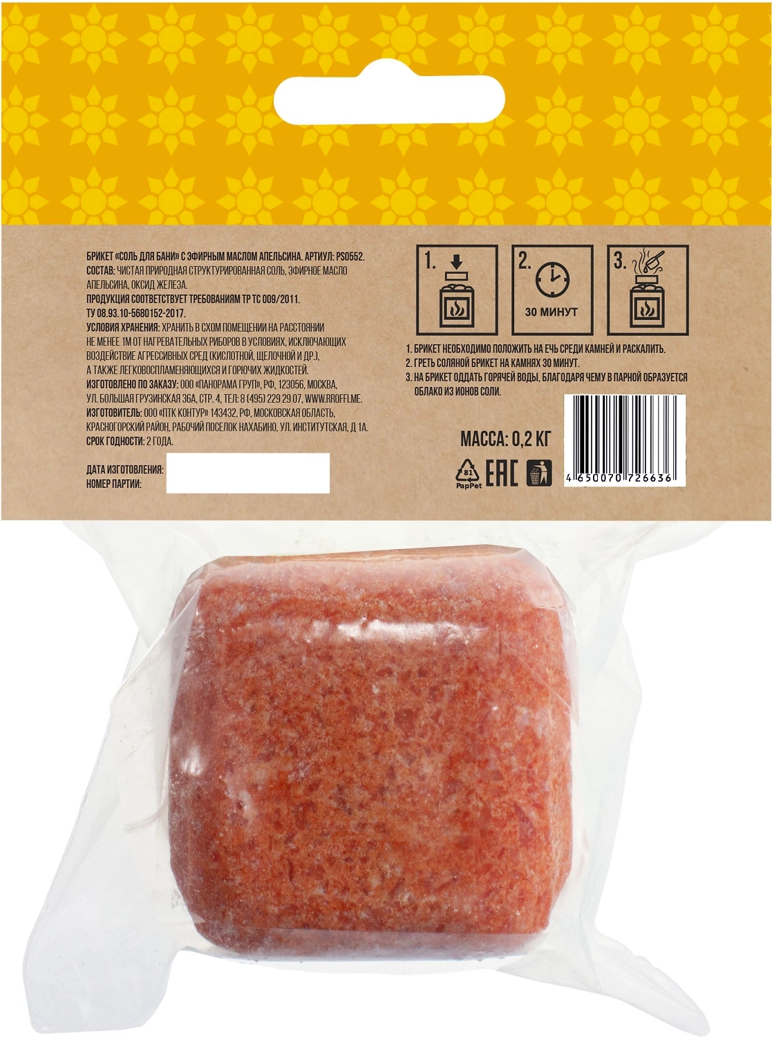 Прессованный кубик из соли для сауны с ароматом апельсина. Заходя в баню/ сауну в парилку, Вы ставите кубик из соли на камни и поливаете камень водой. В результате образуется облако соляного пара, а по всей парилке разносится приятный аромат. 1 кубик рассчитан на 1 применение. Состав: чистая природная структурированная соль, эфирное масло.