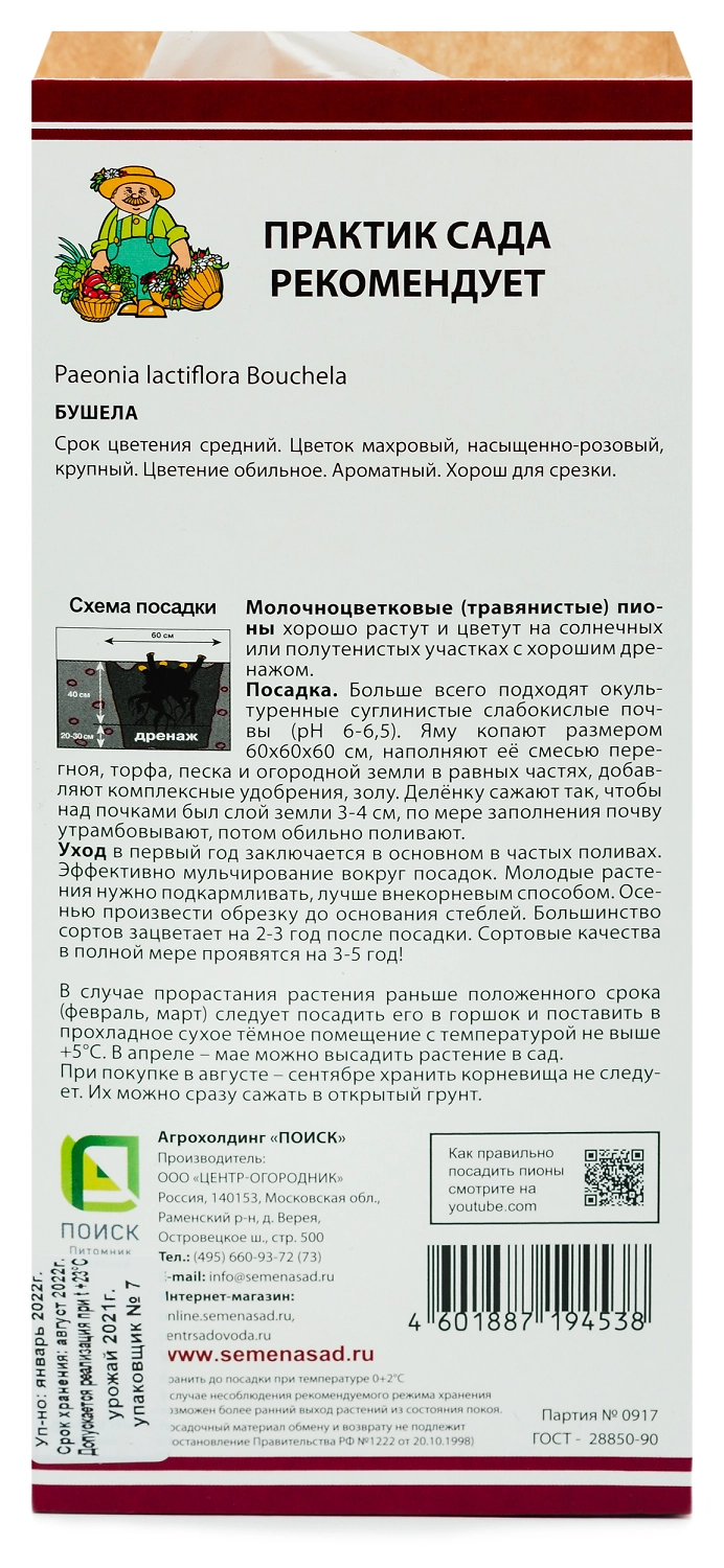 Растение Пион Молочноцветковый Бушела 1 шт