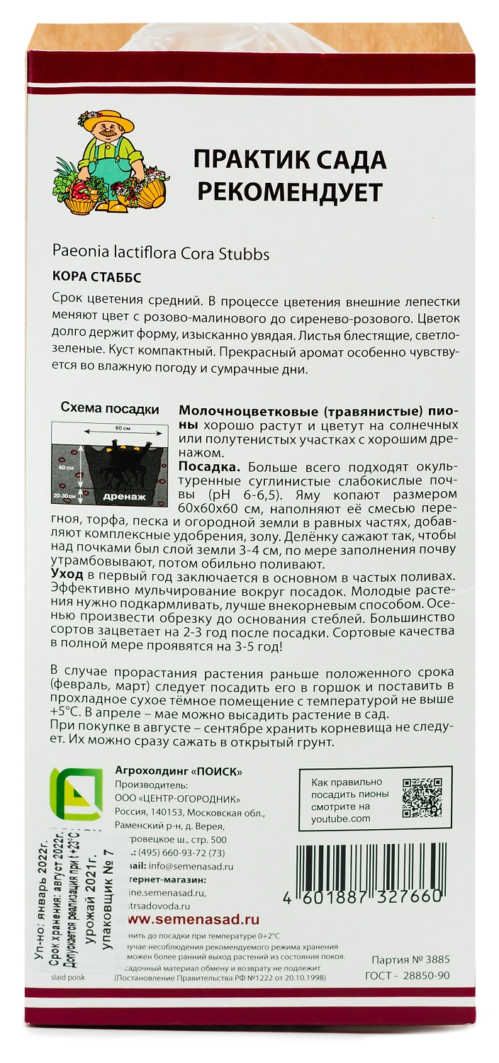 Растение Пион Молочноцветковый Кора Стабс 1 шт