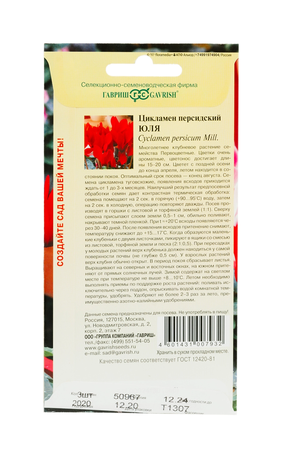 Семена цикламен юлия персидский 3 шт
