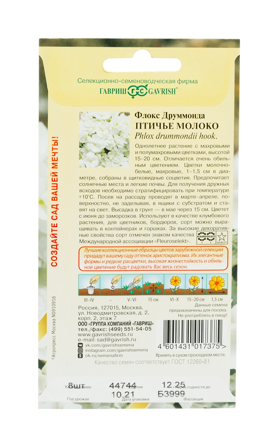 Семена флокс птичье молоко Элитная клумба 8 шт