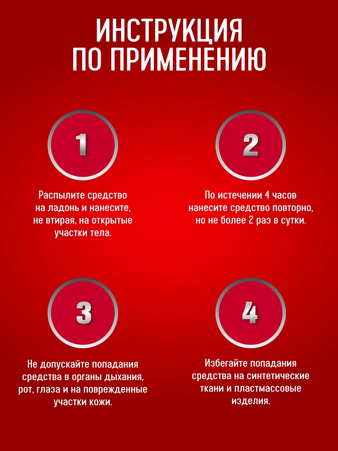 N,N-диэтилтолуамид – 15,0%,спирт этиловый, ванилин, бутан, изобутан, пропан.