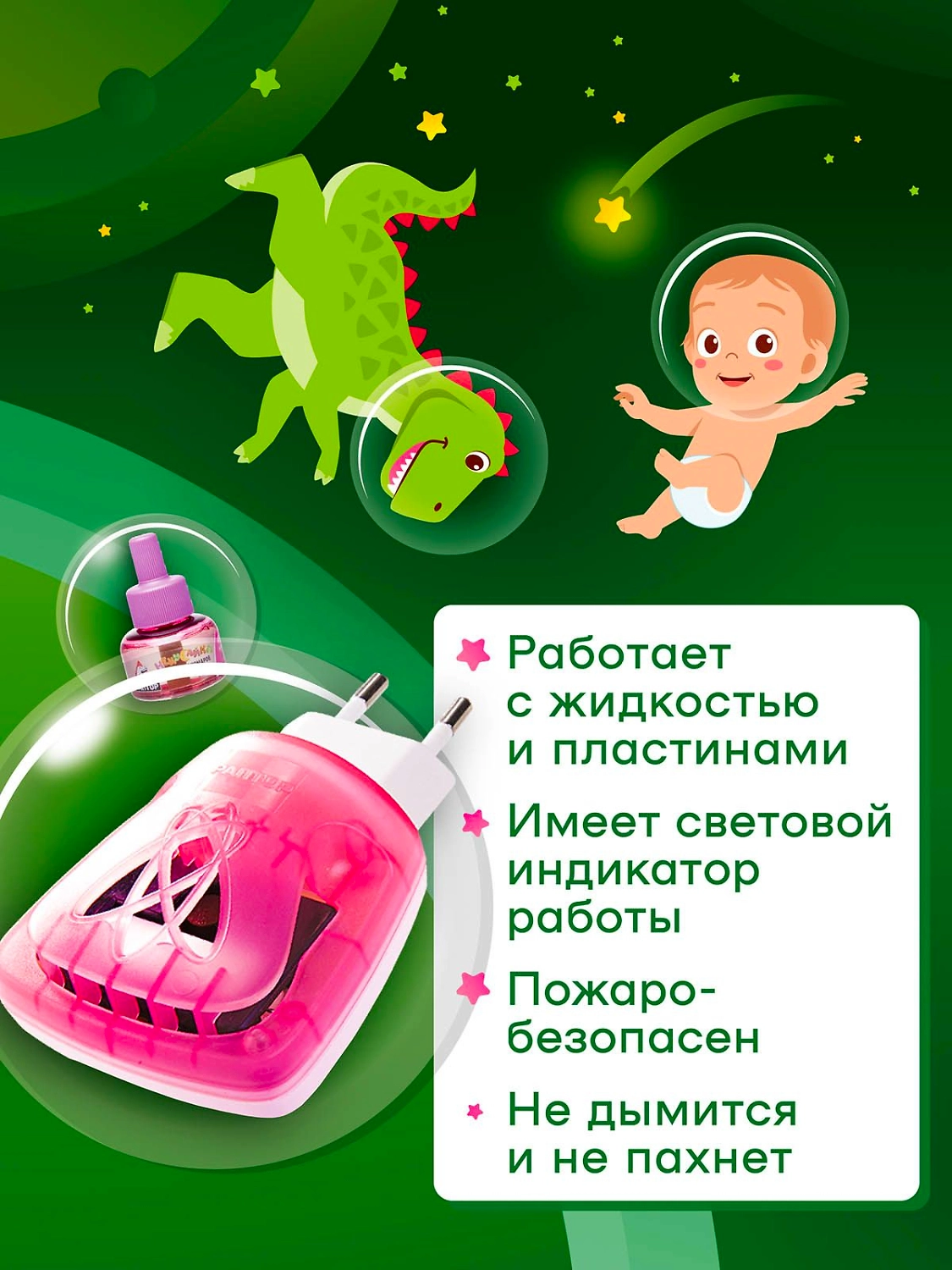 Средство применять в хорошо проветриваемых помещениях или при открытых форточках и окнах не более 8 часов при непрерывной работе прибора; в закрытых помещениях не более 2 часов в отсутствие людей с последующим проветриванием. Не касаться включенного прибора влажными руками и металлическими предметами. Включать прибор на расстоянии не менее 1 м от человека. Хранить отдельно от пищевых продуктов в месте, недоступном для детей и домашних животных. Лица, страдающие аллергическими заболеваниями, должны применять средство с осторожностью. При появлении дискомфортных ощущений прекратить использование средства и проветрить помещение. Закрыть аквариум на время работы прибора. ОСТОРОЖНО! Средство относится к малоопасным препаратам по воздействию на организм. Средство обладает раздражающим действием на слизистые оболочки глаз. Средство пожароопасно.