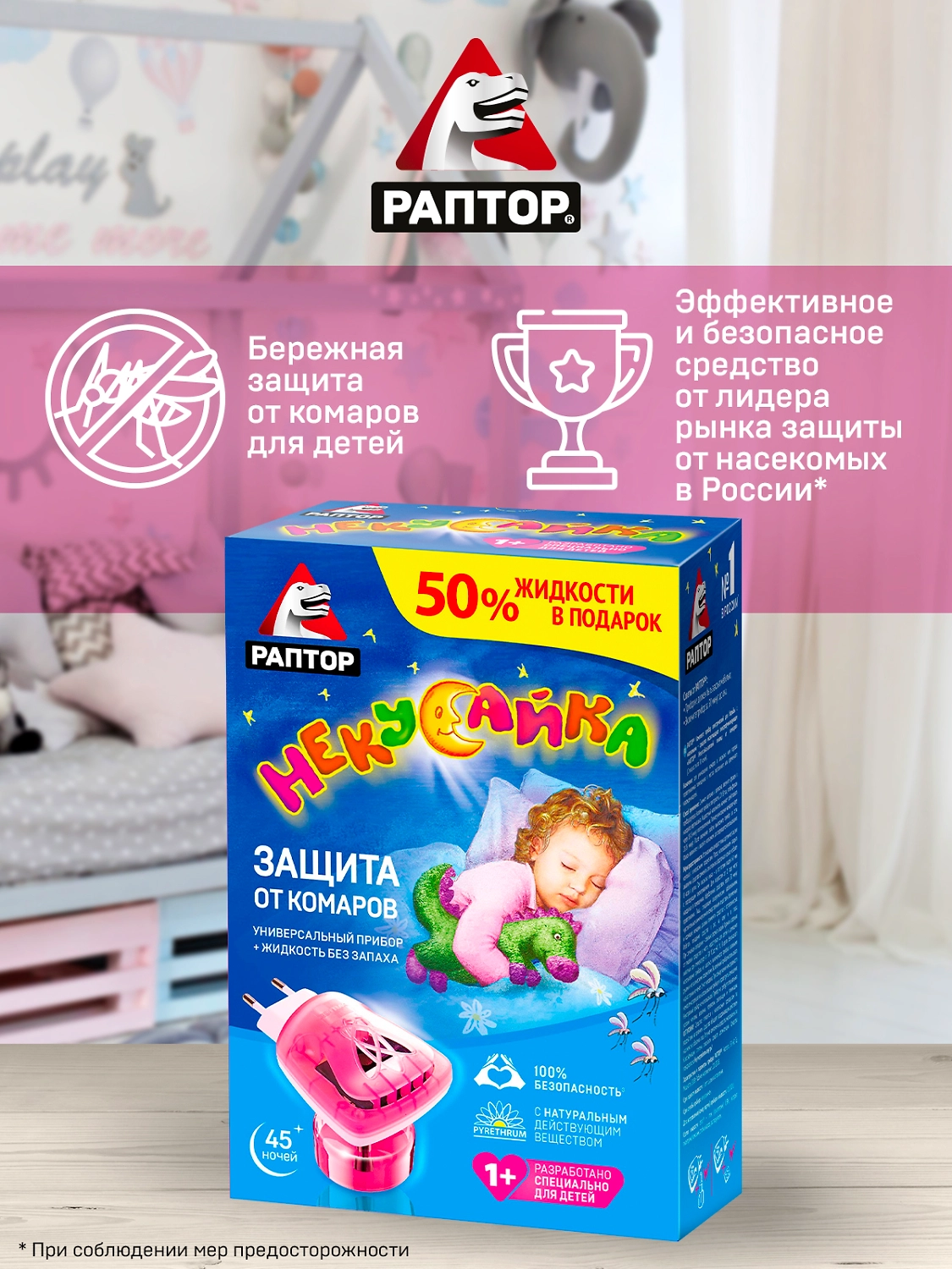 Фумигатор от комаров РАПТОР Некусайка прибор+жидкость 45 ночей
