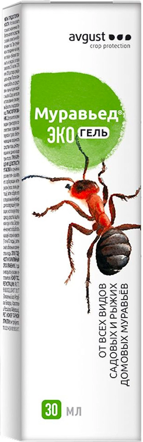 Средство Avgust ЭКО Муравьед выполнено в виде геля на основе борной кислоты. Средство удобно в использовании и эффективно против всех видов садовых и рыжих домашних муравьев.