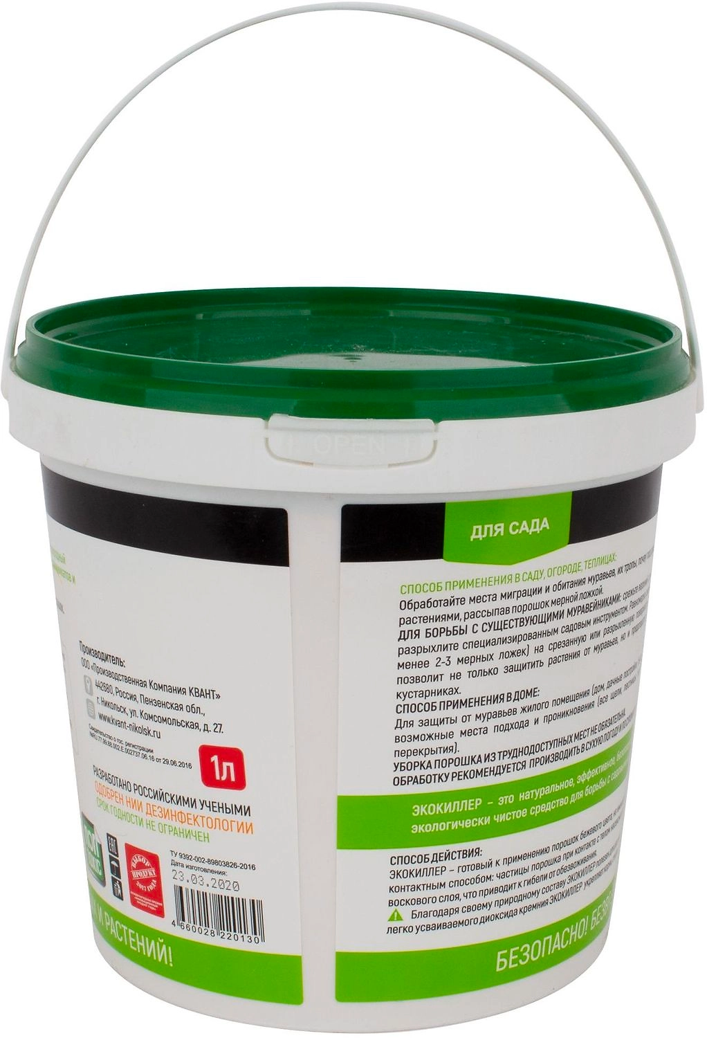 Уникальный биоинсектицид, не содержит ядохимикатов и отравляющих веществ. Полностью натуральное, экологичное средство. Безопасно для людей и животных. Не токсичен. Не имеет запаха.