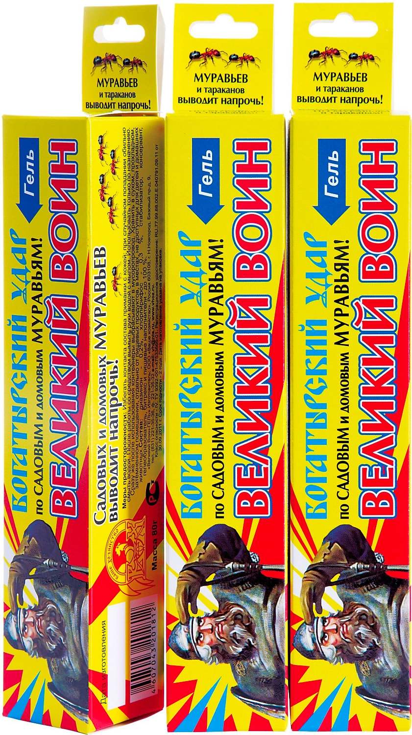 Великий воин гель - приманка с двумя веществами, губительными для муравьев. Специальный состав ее так привлекателен для насекомых, что рабочие особи не только охотно поедают ее сами, но приносят в муравейник и кормят личинок. Благодаря этому уже через несколько дней погибает вся муравьиная колония. Пригодится гель Великий Воин и в борьбе с домовыми муравьями. Уничтожает всю колонию муравьев.