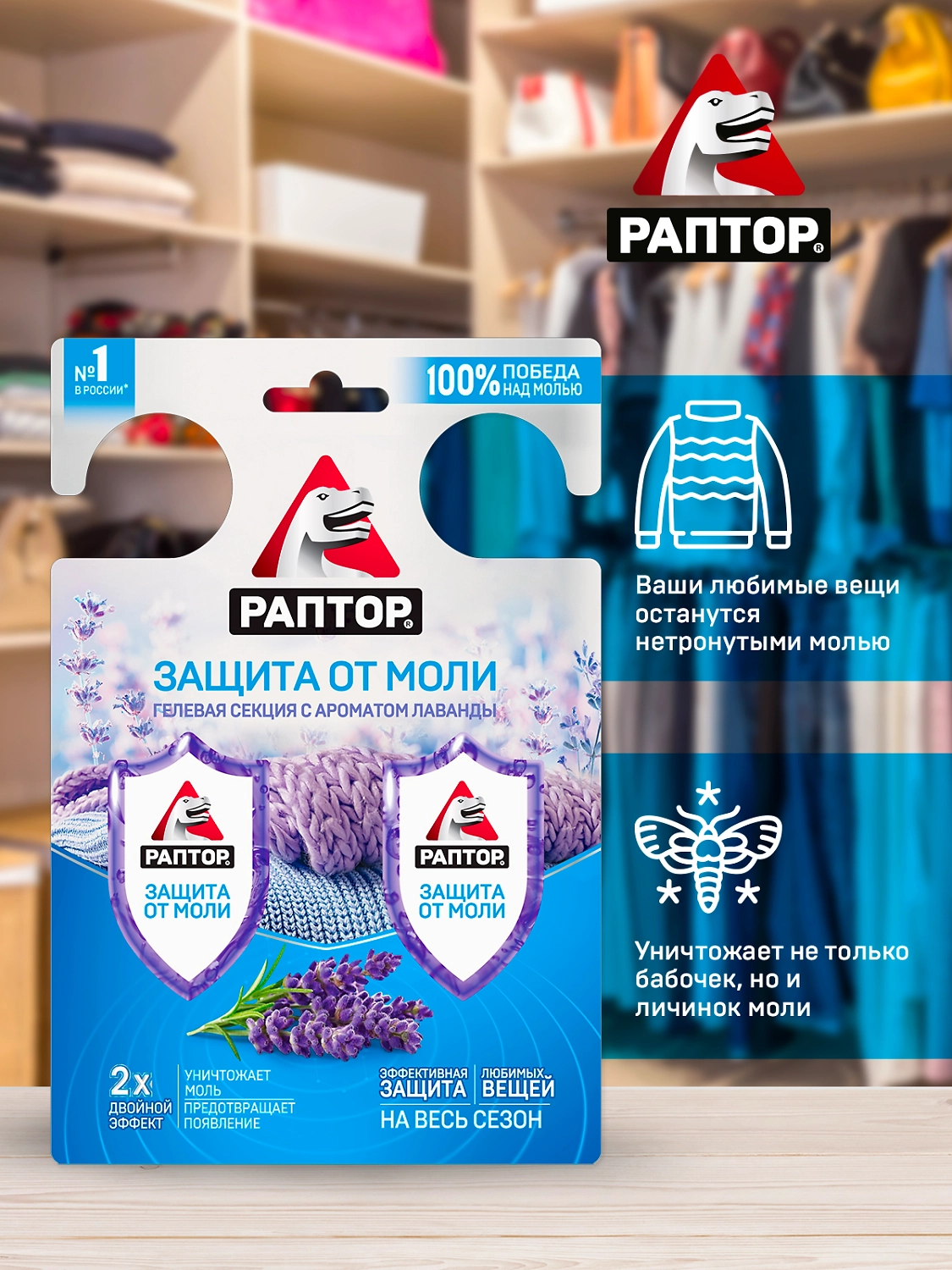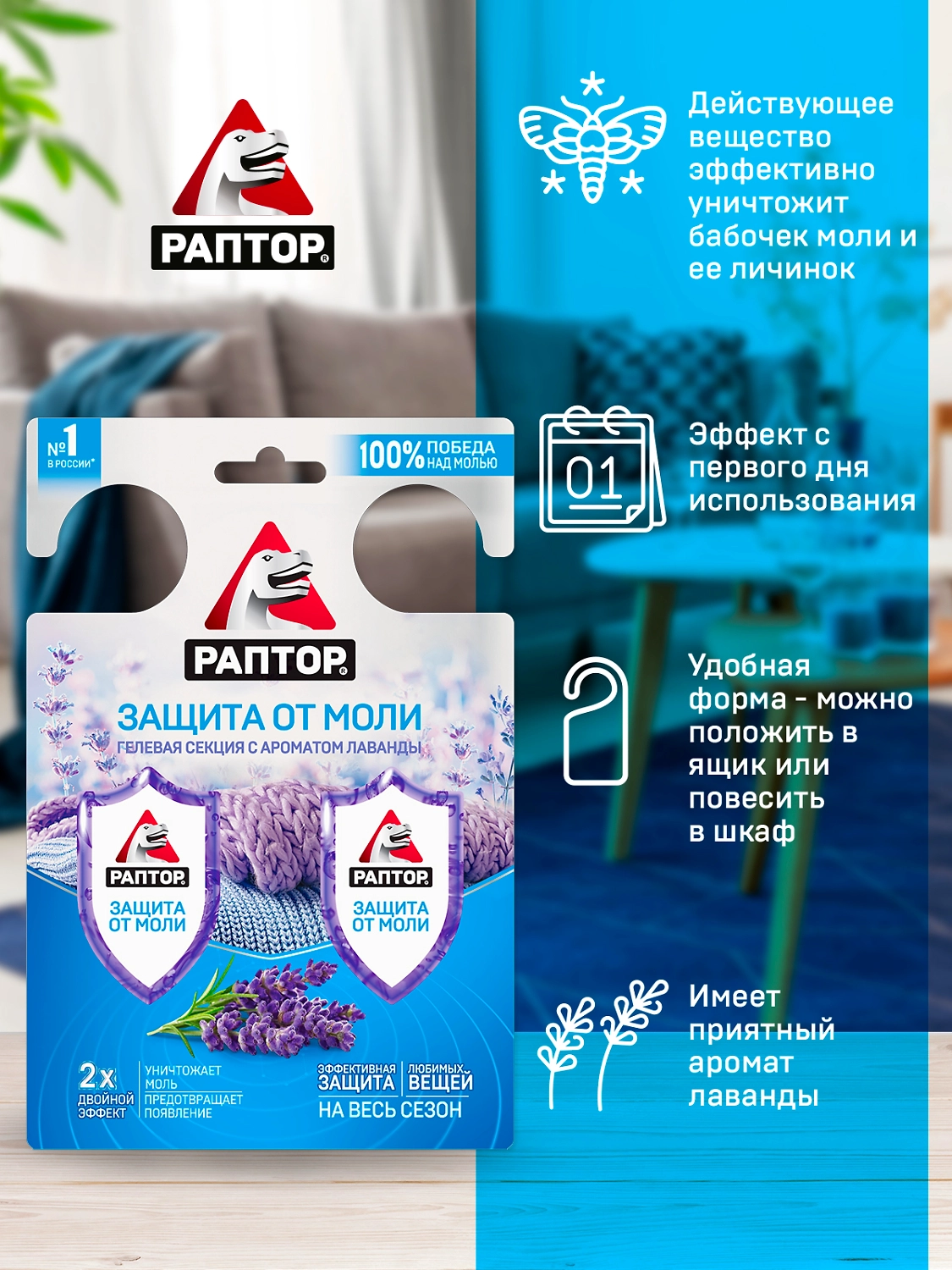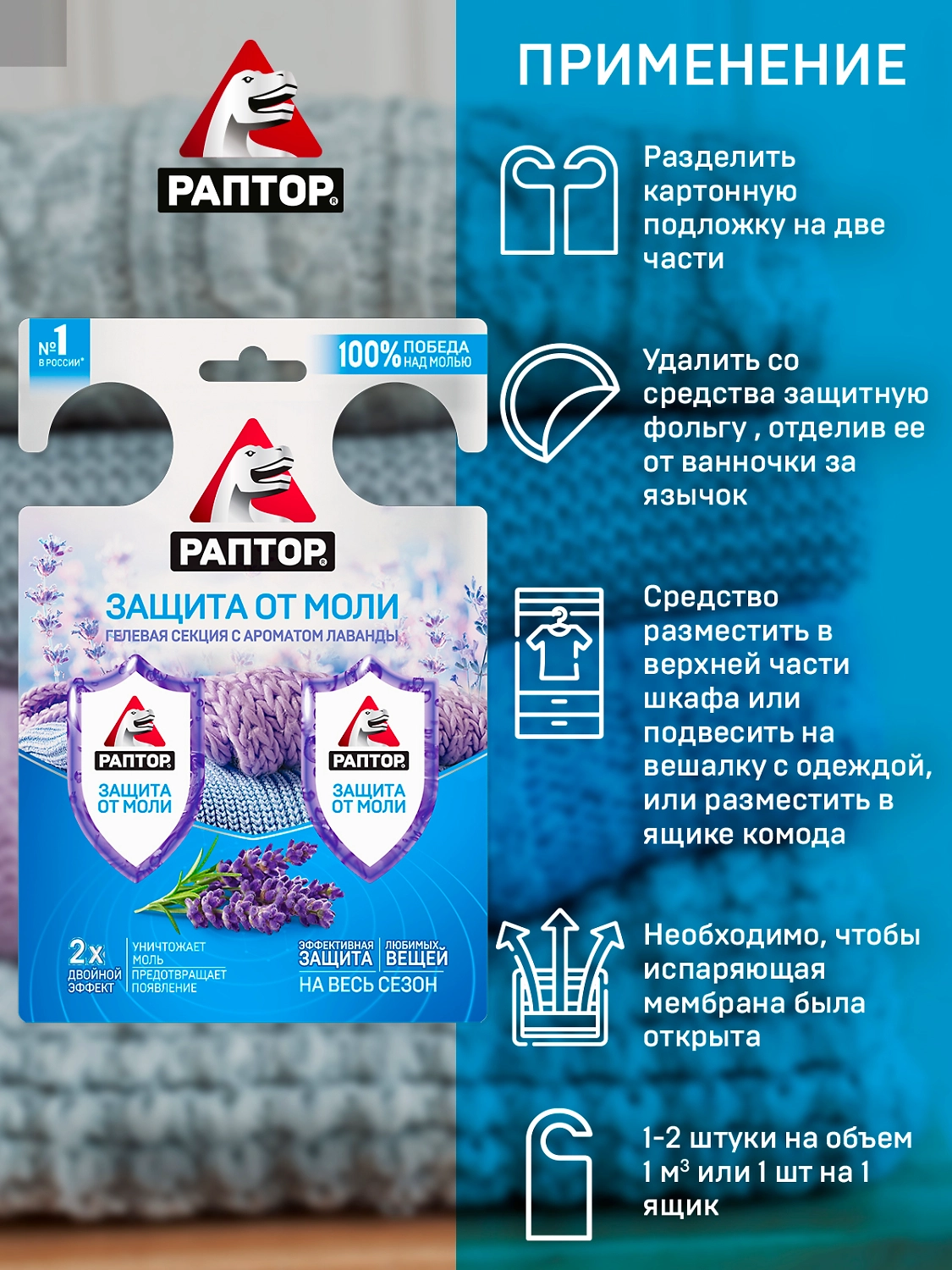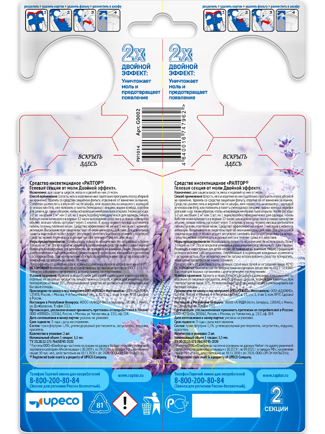 Раптор Гелевая секция от моли с запахом лаванды.