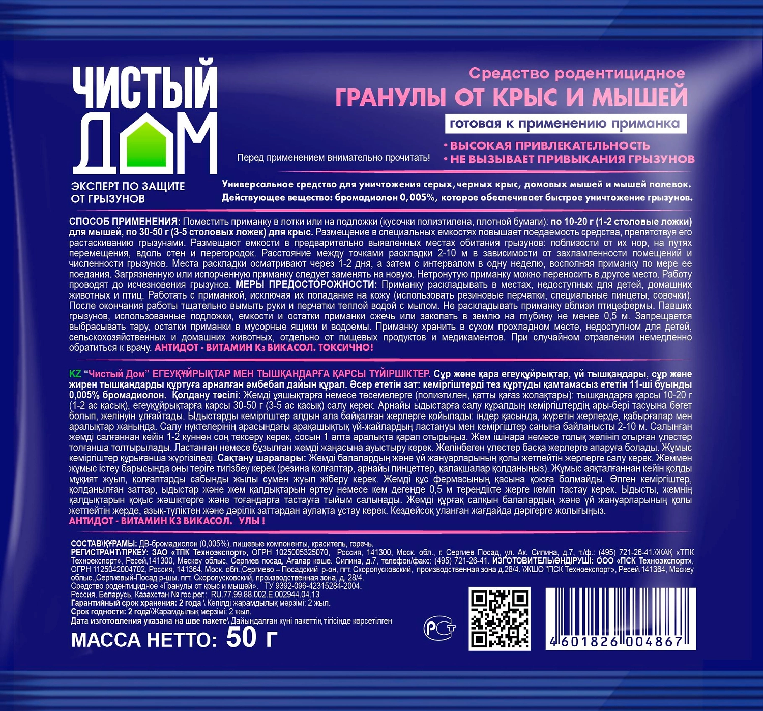 Гранулированная приманка от крыс и мышей Чистый Дом 50 г