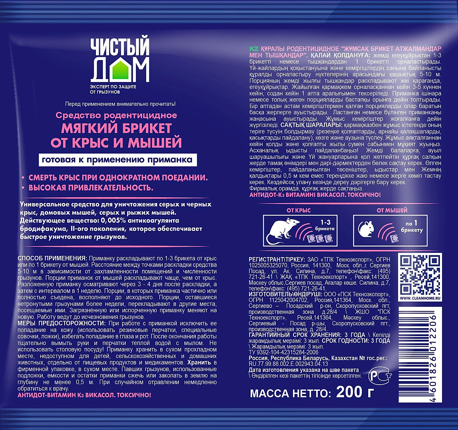 Приманка от крыс и мышей Чистый Дом 200 г