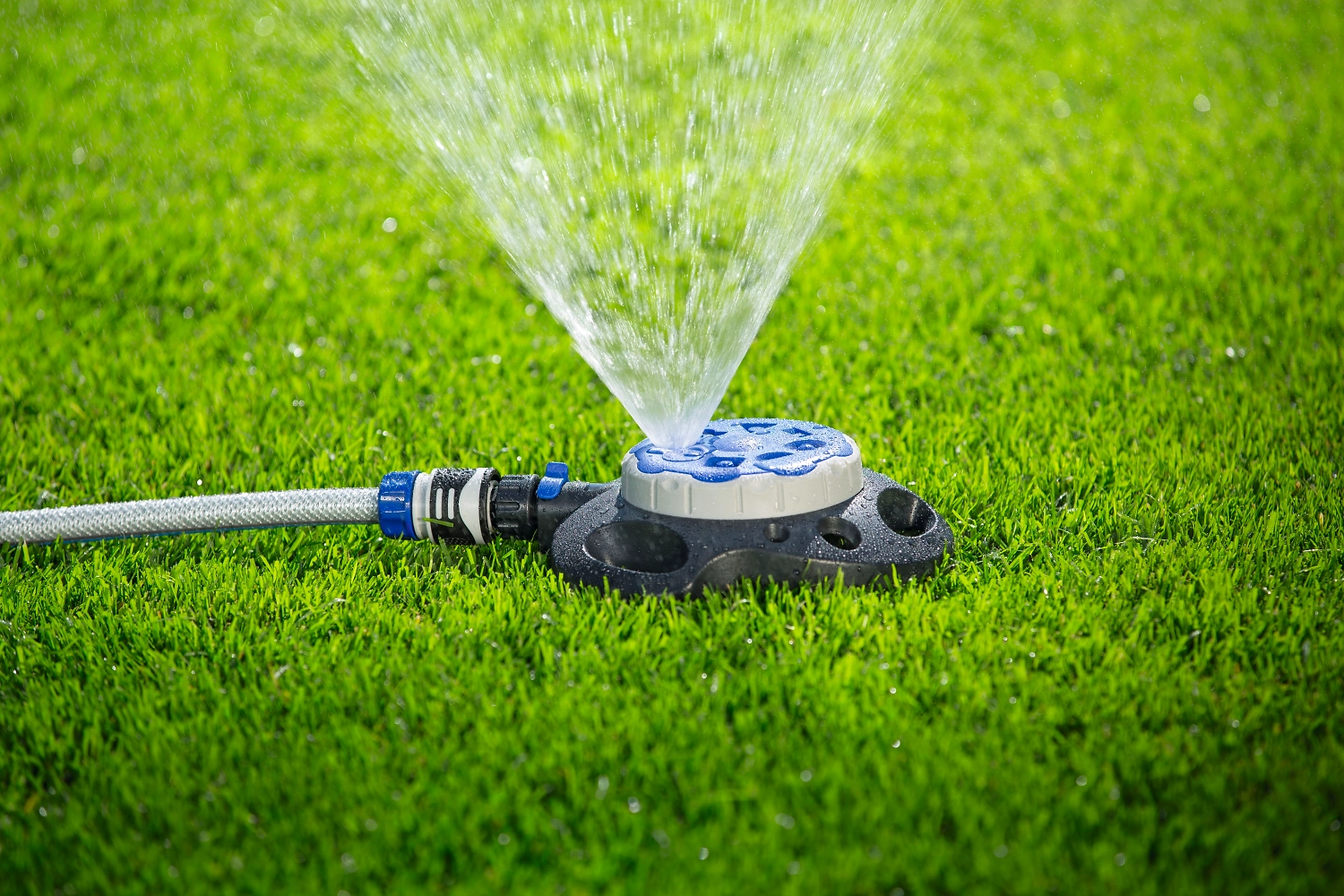 - Для подготовки к работе достаточно подключить дождеватель к водопроводной сети с помощью шланга и включить систему полива.