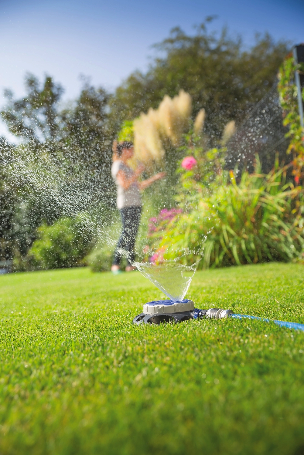 Круговой дождеватель устанавливается на газонах, придомовых лужайках, клумбах, в садах и огородах, упрощает уход за растениями и освобождает время для отдыха.