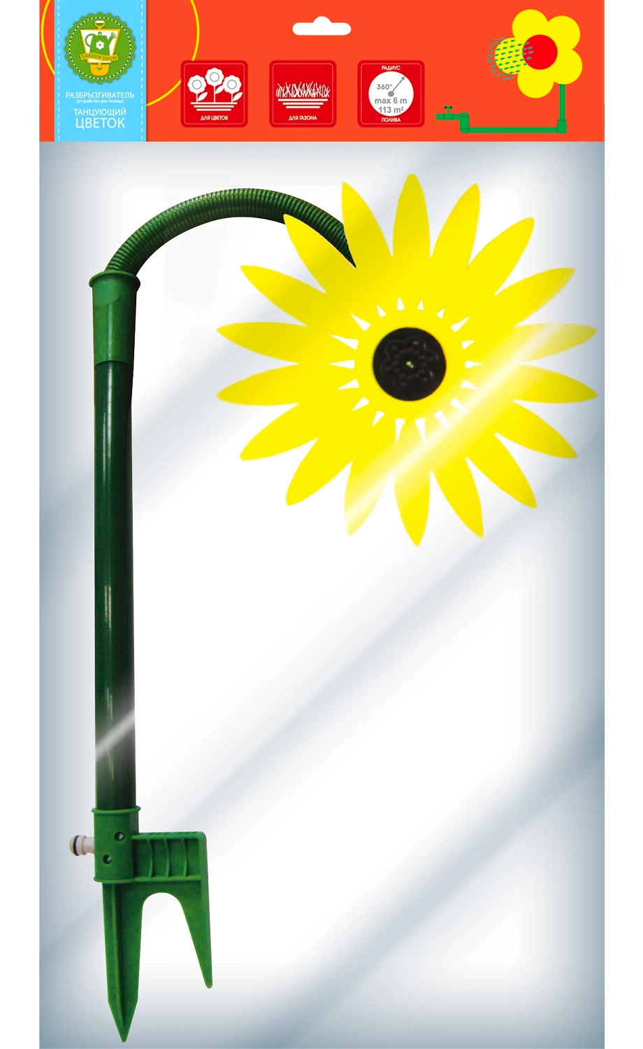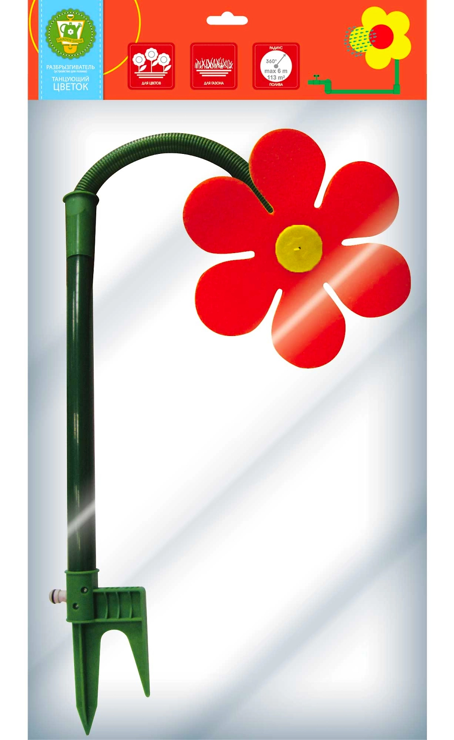 Оригинальный разбрызгиватель "Танцующий цветок" применяется для стационарного полива растений при подключении к садовому шлангу при помощи соединителя. Головка распылителя выполнена в виде цветка.