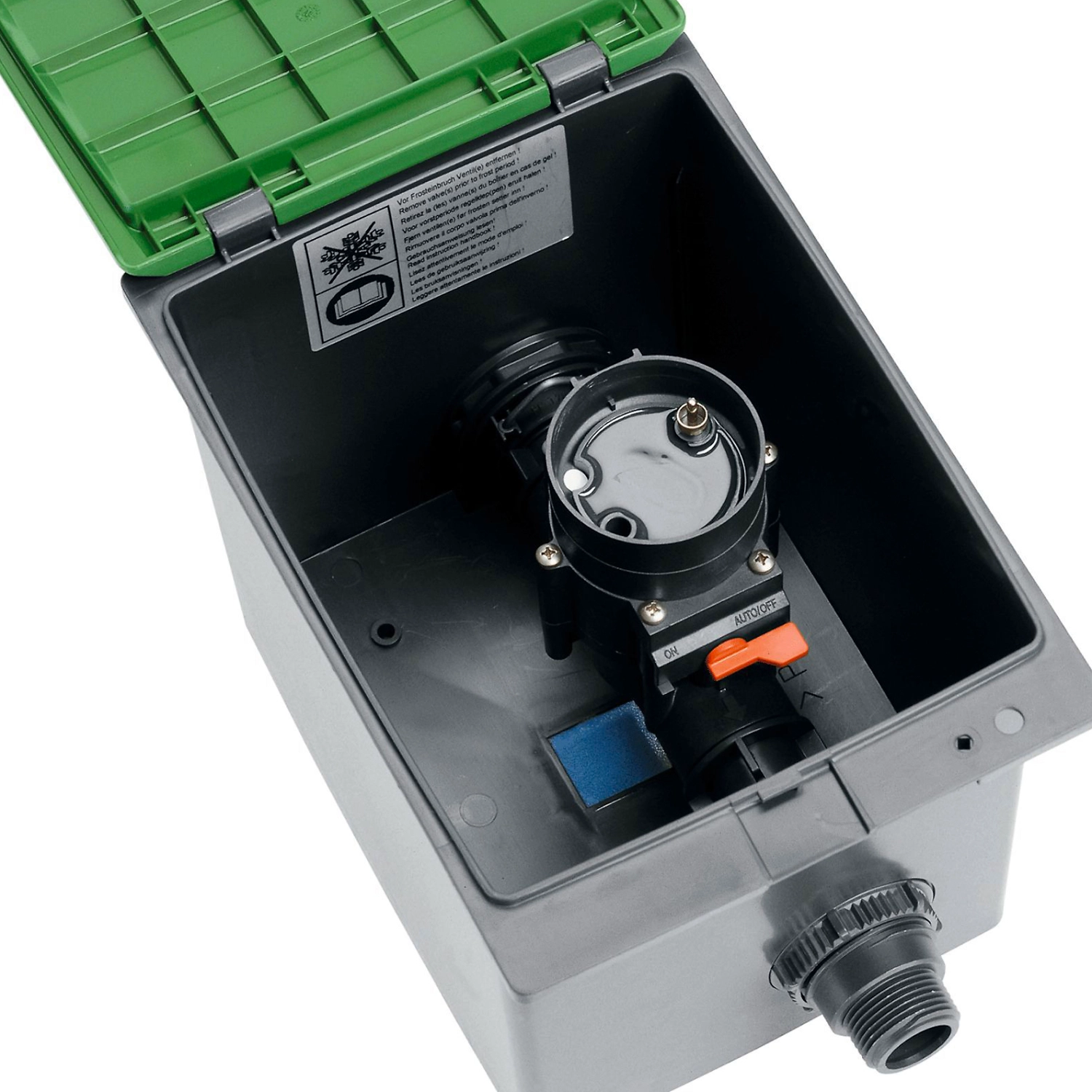 Коробка V1 GARDENA рассчитана на подземную установку одного клапана для полива 24 В (арт. 1278-20) или одного клапана для полива 9 В (арт. 1251-20). Телескопическое резьбовое соединение обеспечивает удобство монтажа/демонтажа клапана. Крышка снабжена механизмом блокировки для безопасности детей. Коробка для клапана для полива V1 GARDENA снабжена наружной резьбой 1 дюйм.