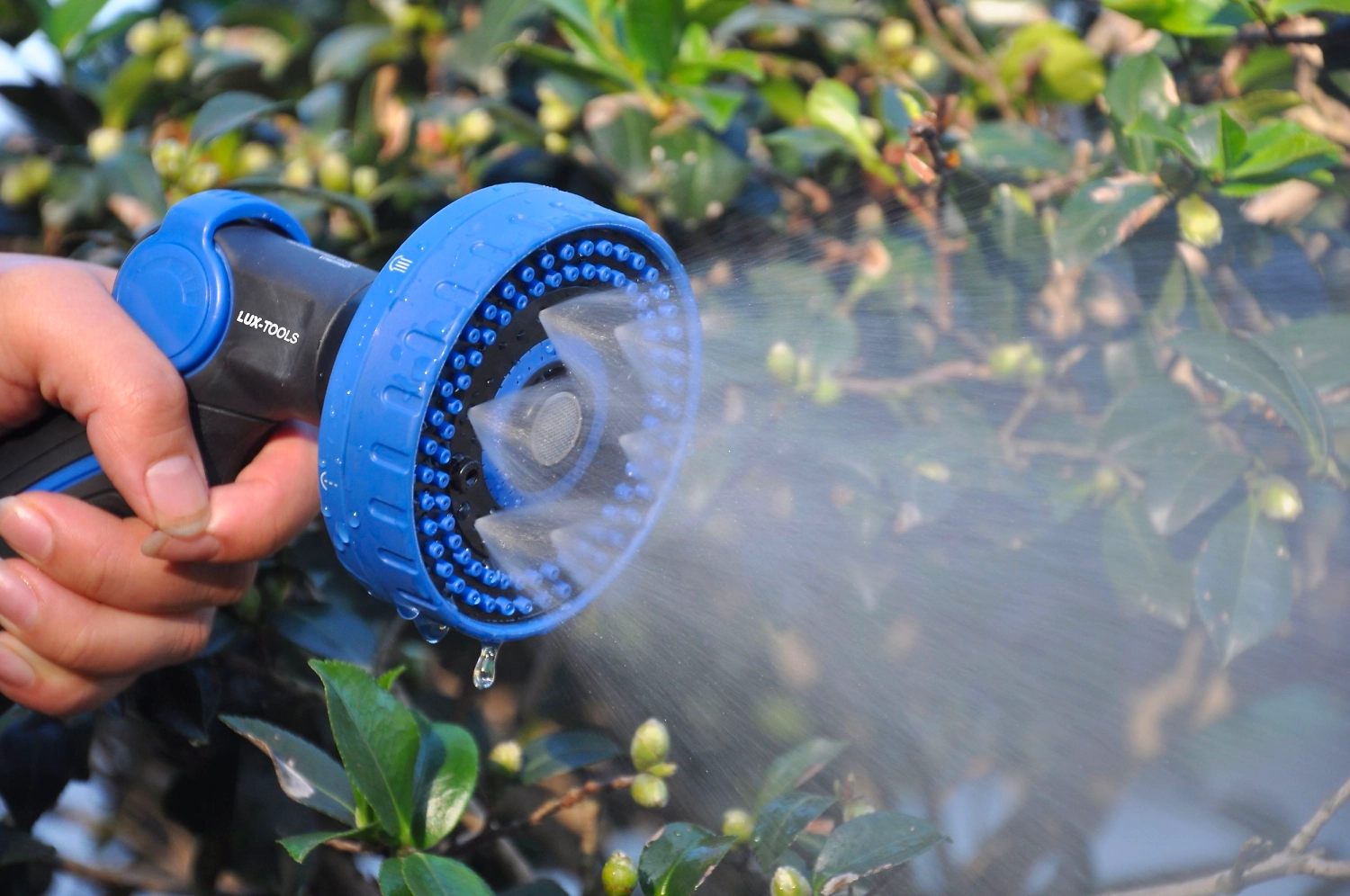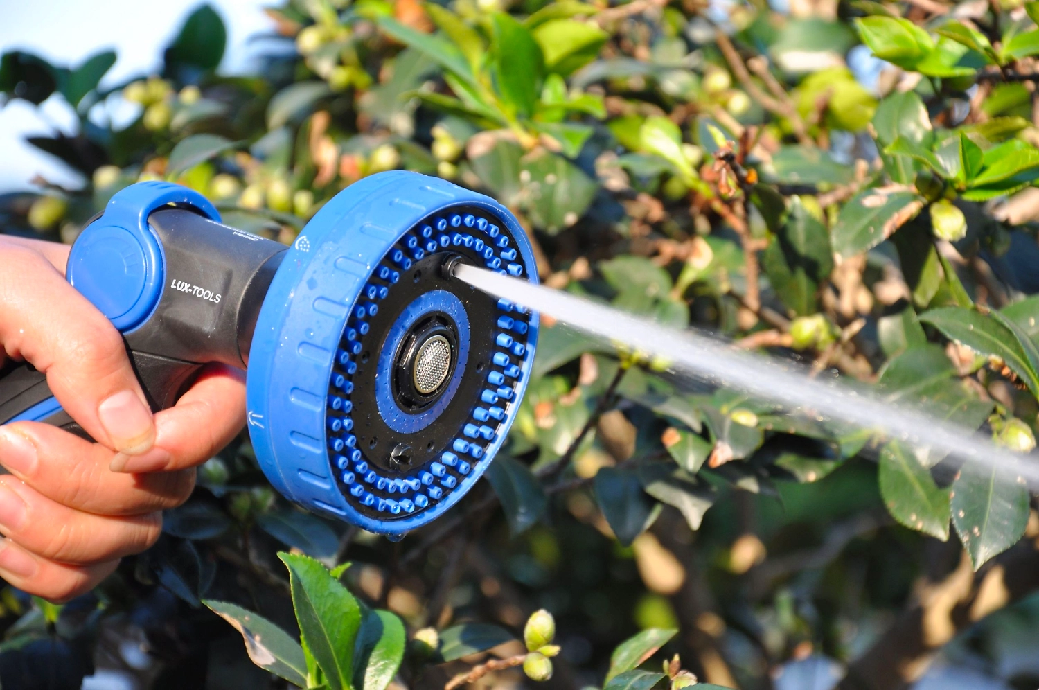 Пистолет для полива LUX-TOOLS представляет собой насадку на шланг, работающую в 6 режимах: от мощной струи для мытья дорожек до мелкодисперсного распыления для бережного опрыскивания растений.