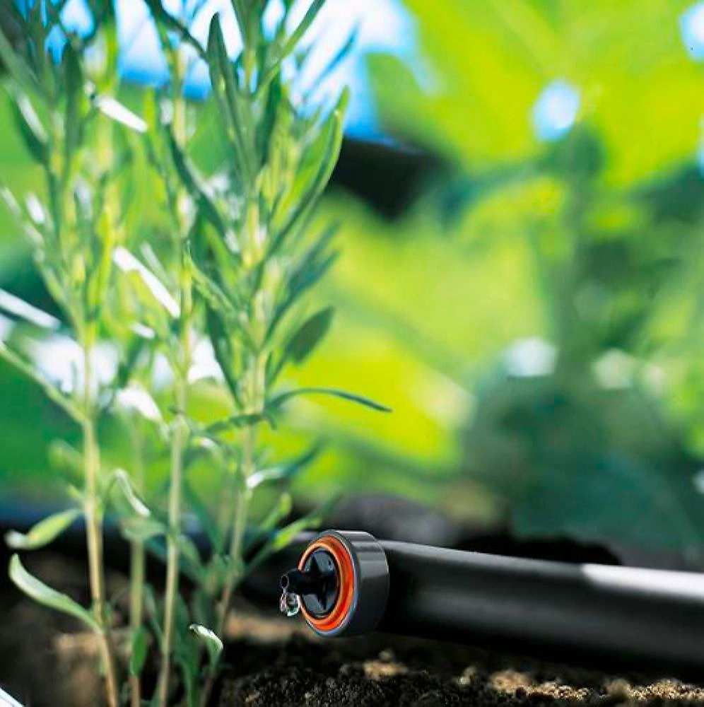 Капельница концевая, компенсирующая давление, является элементом системы микрокапельного полива GARDENA Micro-Drip-System и предназначена для полива систем, систем, установленных на наклонной поверхности, а также для длинных капельных сетей. Может использоваться для полива растений с одинаковой потребностью в поливе. Вне зависимости от давления (0,5-4 бар) капельница обеспечивает постоянный расход 2 л/ч. Надежная, длительная эксплуатация за счет использования технологии мембран-лабиринта. После выключения капельница автоматически перекрывает подачу воды. Для полива отдельно посаженных растений капельница вставляется в выходной конец подающего шланга диаметром 3/16 дюйма. Капельницу можно напрямую установить в магистральный шланг диаметром 13 мм (1/2 дюйма), сделав в шланге отверстие с помощью инструмента для сборки. В комплект поставки входят десять капельниц.