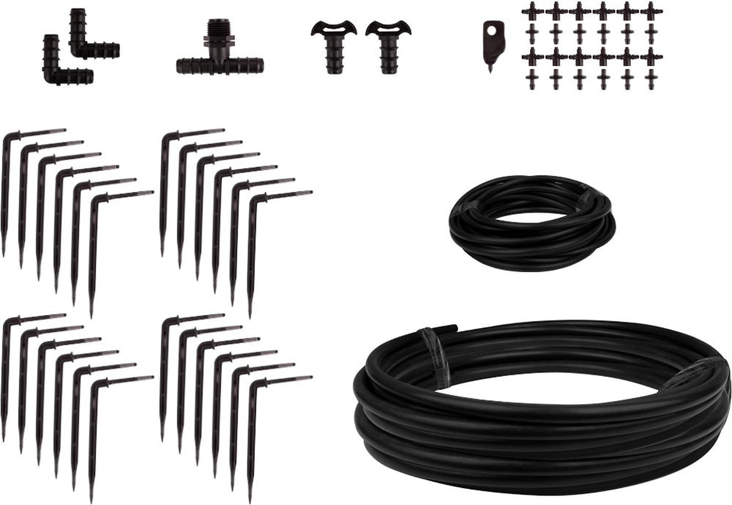• Комплектация Труба ПНД, Капельная трубка, Уголок для трубы ПНД, Тройник для трубы ПНД, Заглушка для трубы ПНД, Капельница угловая, Дырокол (шило) для установки капельниц, Разветвитель (сплиттер) на 2 микротрубки