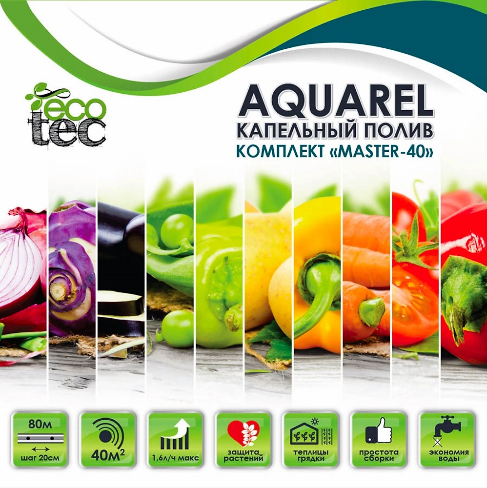 Полив капельный ECOTEC Aquarel комплект Master-40 80 м 6 линий ЛК d 16 мм