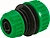 Ремонтная муфта-переходник LUX-TOOLS с отверстиями 1/2 дюйма и 3/4 дюйма предназначена для соединения двух шлангов разных диаметров с целью увеличения дальности полива.
