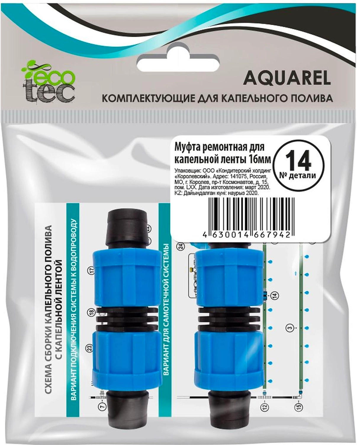 Муфта ремонтная для шланга ECOTEC Aquarel 16 мм 2 шт