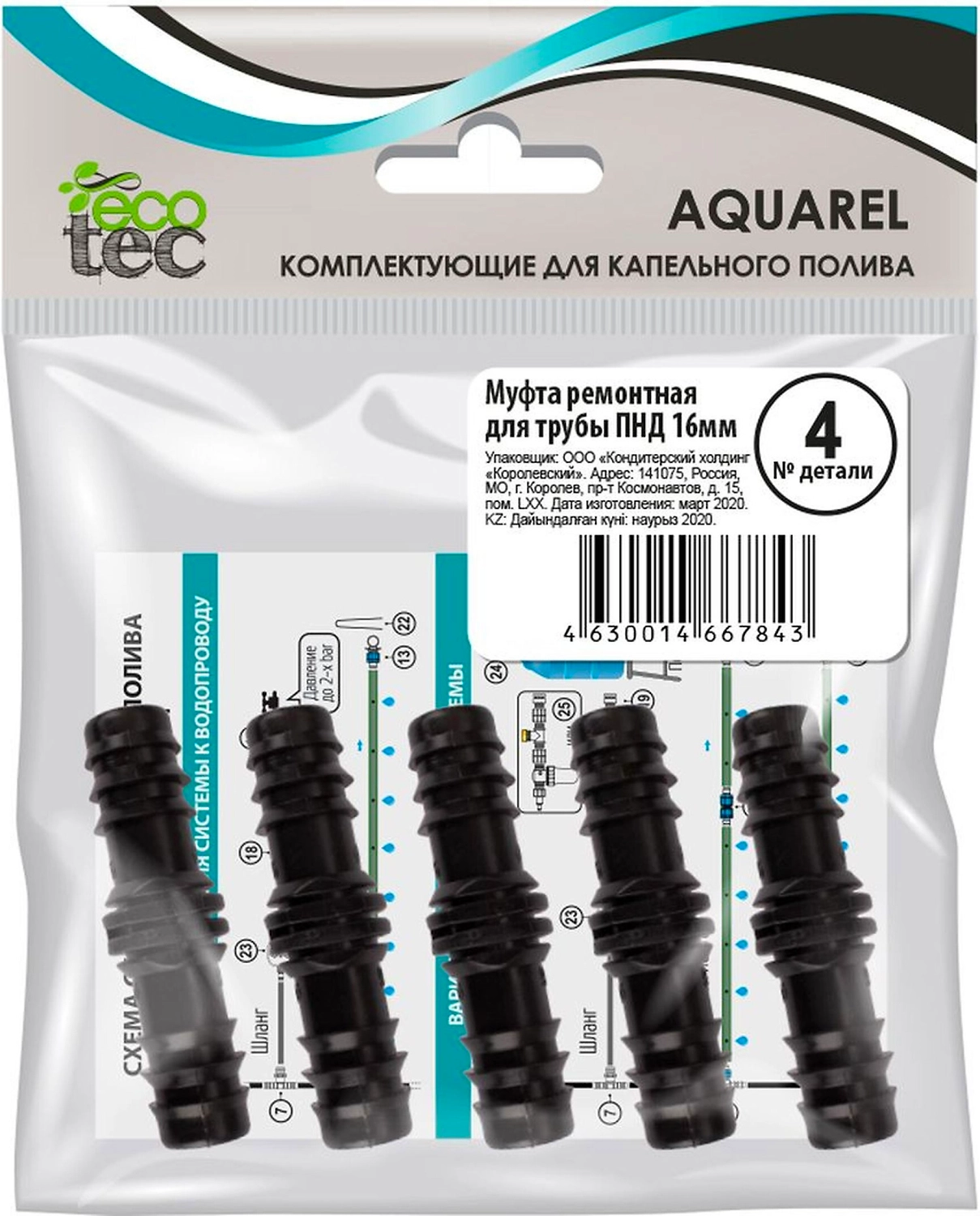 Муфта ремонтная для шланга ECOTEC Aquarel 16 мм 5 шт