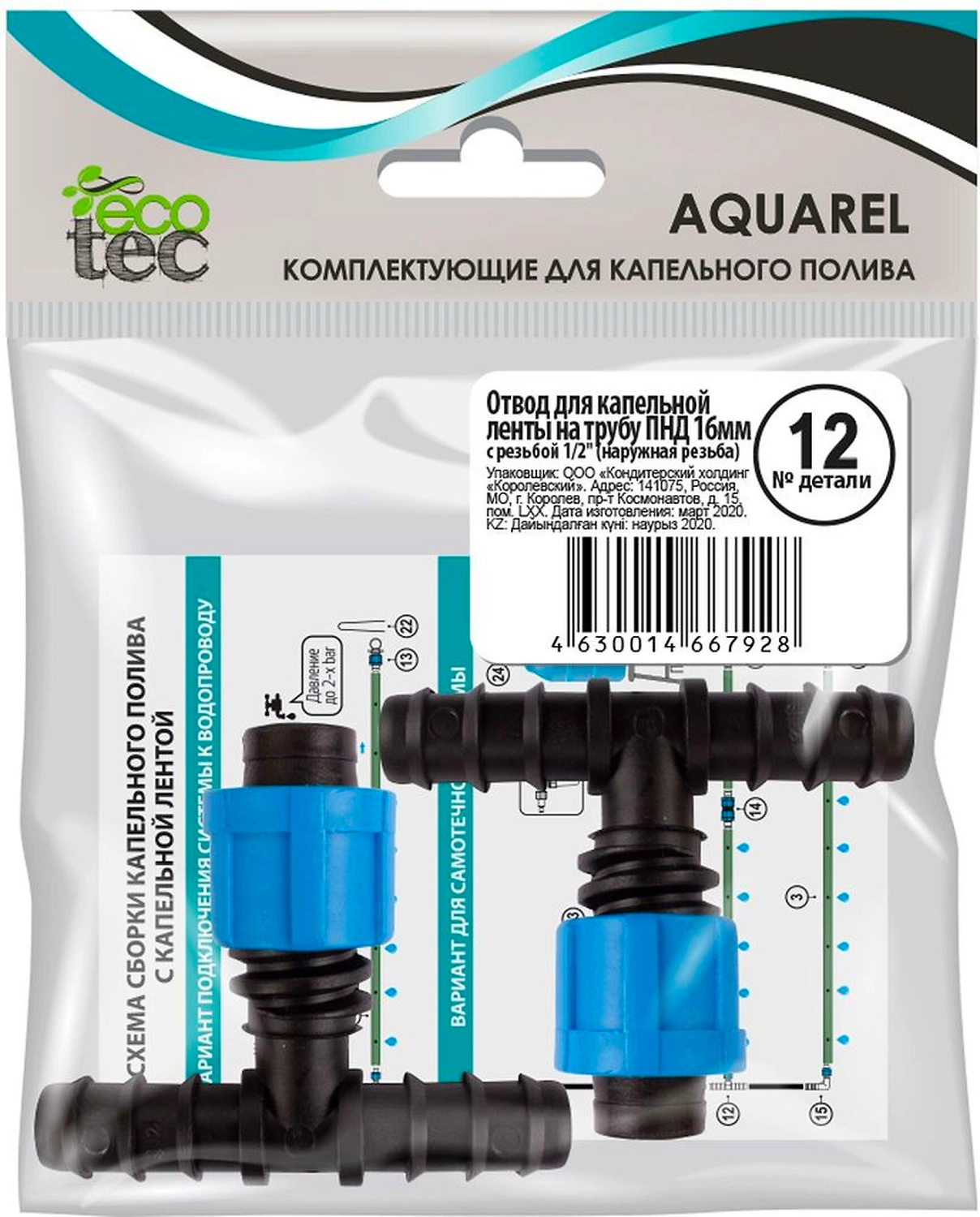 Отвод для капельной ленты для шланга ECOTEC Aquarel 1/2 дюйма 2 шт