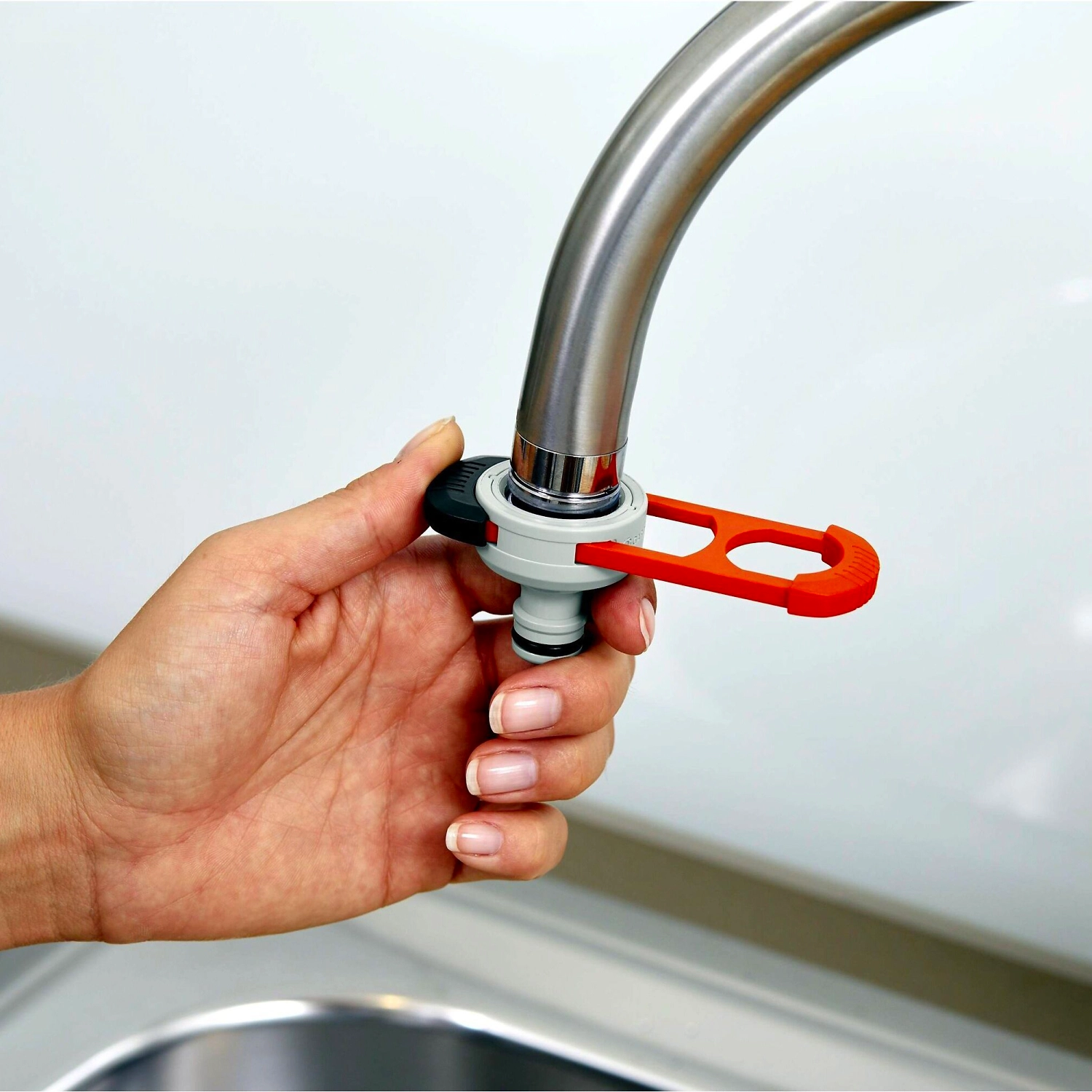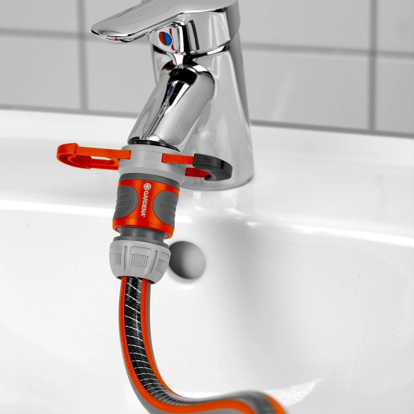 Штуцер без резьбы с аэратором. Быстрое соединение с краном. С помощью данного адаптера GARDENA можно подсоединить к внутреннему водопроводному крану, расположенному, например, на кухне или в ванной комнате. Предназначен для кранов с внутренней резьбой M 22 x 1 и наружной резьбой M 24 x 1.