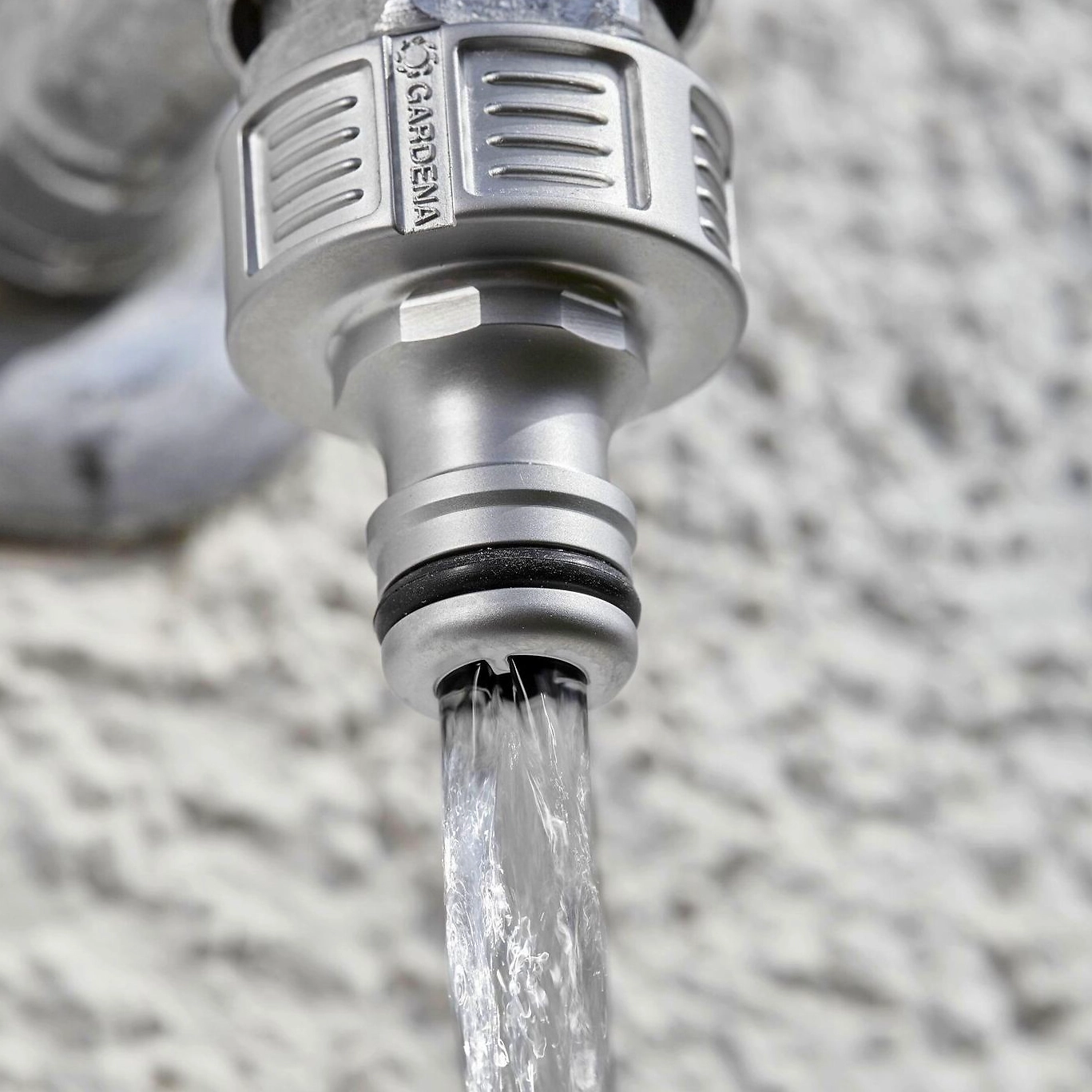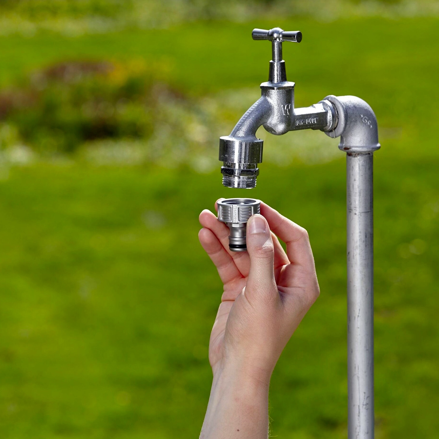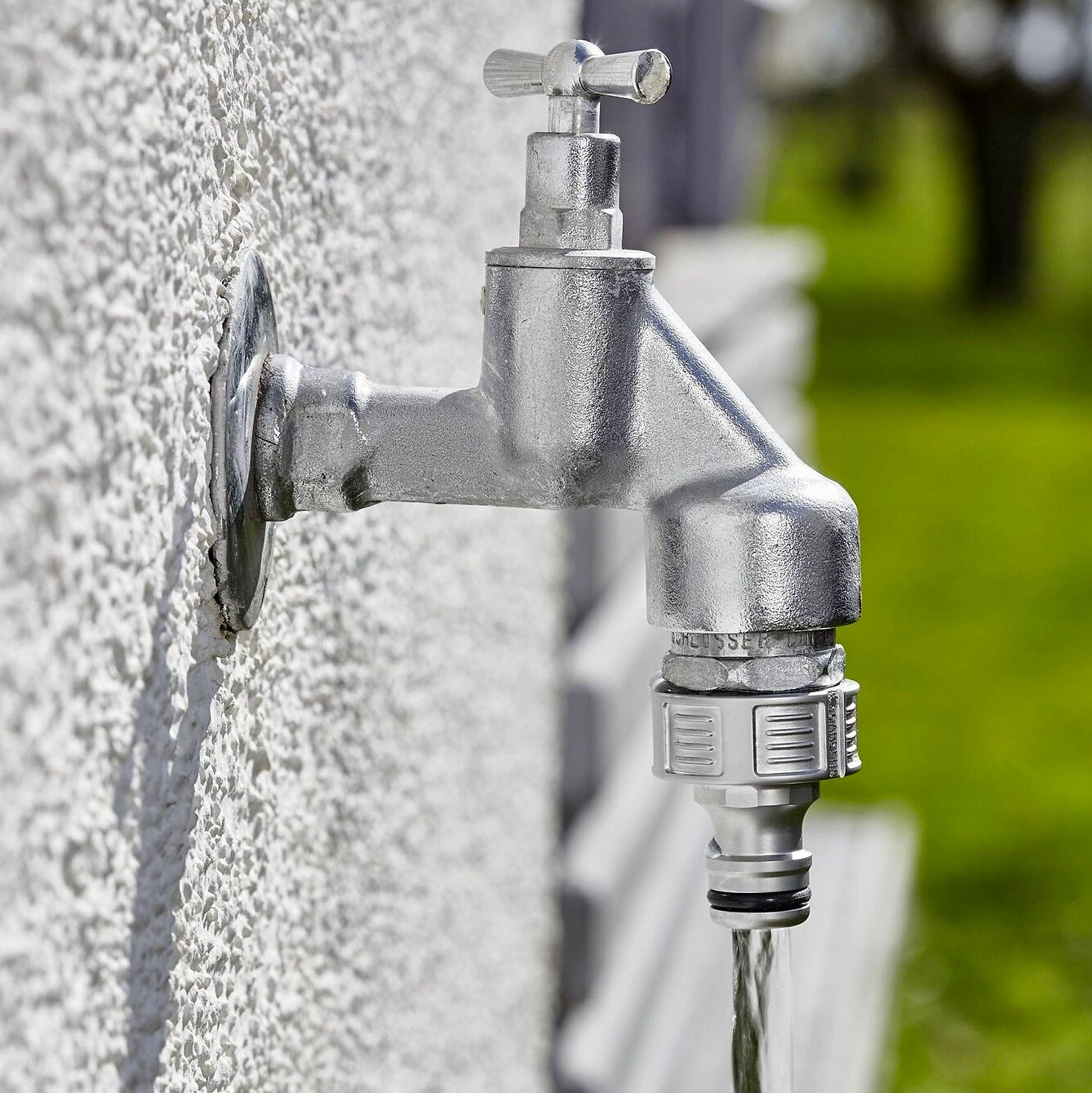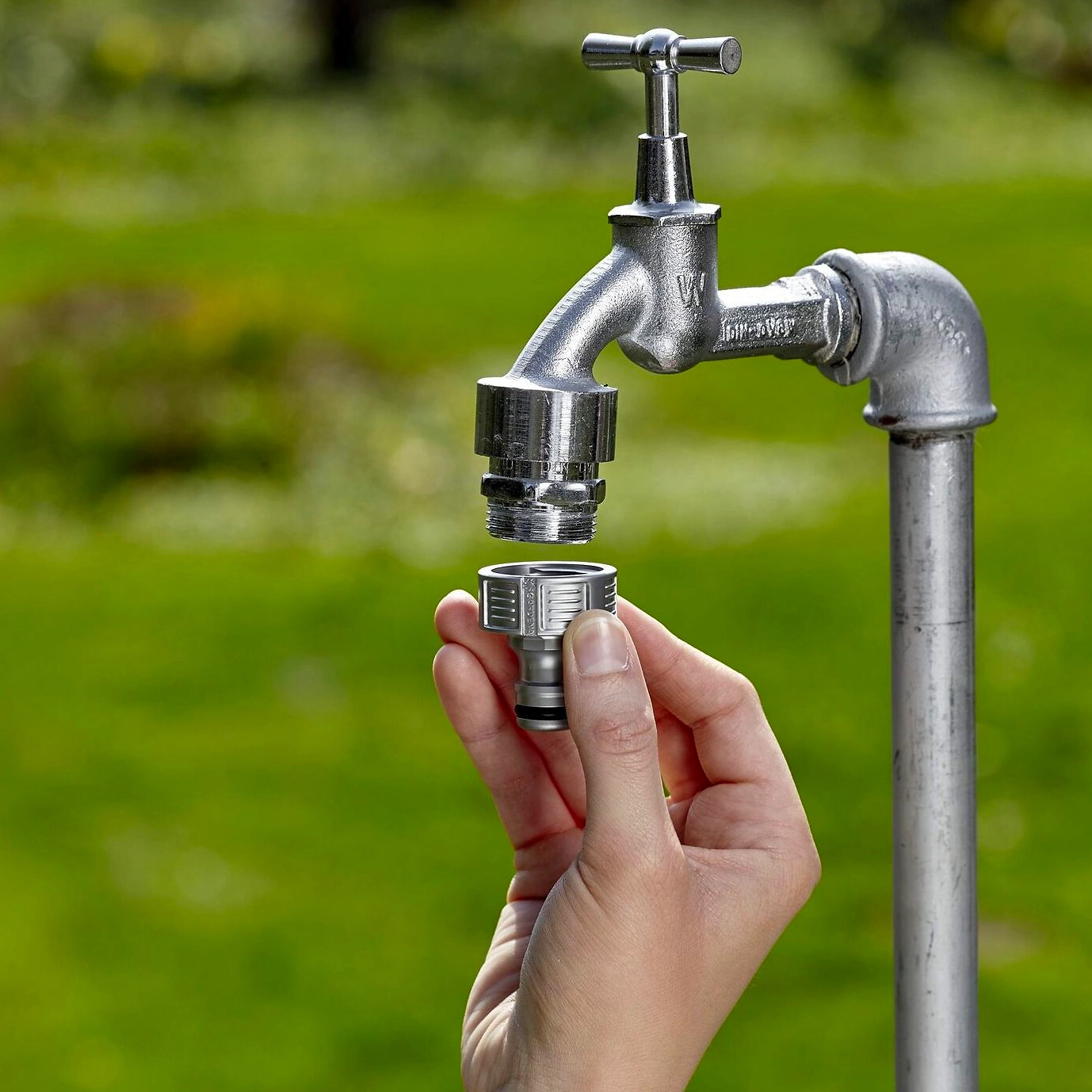 Штуцер Premium из прочного высококачественного металла обеспечивает надежное соединение садового шланга с краном. Простое и удобное накручивание на резьбу благодаря специальной форме корпуса.