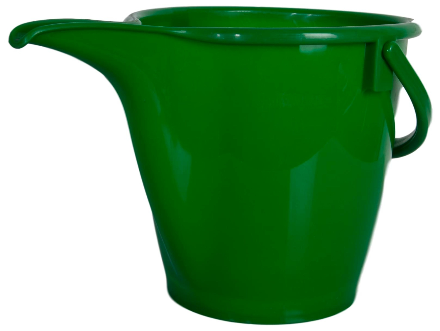 Лейка-ведро садовая с широкой горловиной, ручкой в форме дужки и узким длинным носиком для слива жидкости используется для ухода за растениями и других хозяйственных нужд.