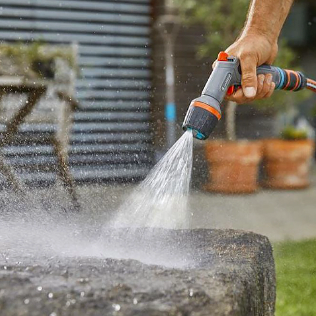 Пистолет-наконечник GARDENA Comfort ecoPulse одинаково подходит как для эффективной очистки, так и для орошения. Пистолет-наконечник оснащен инновационной струей ecoPulse. Колеблющаяся струя воды особенно эффективна при очистке поверхности и экономит до 40 процентов воды по сравнению со стандартной жесткой струей GARDENA.