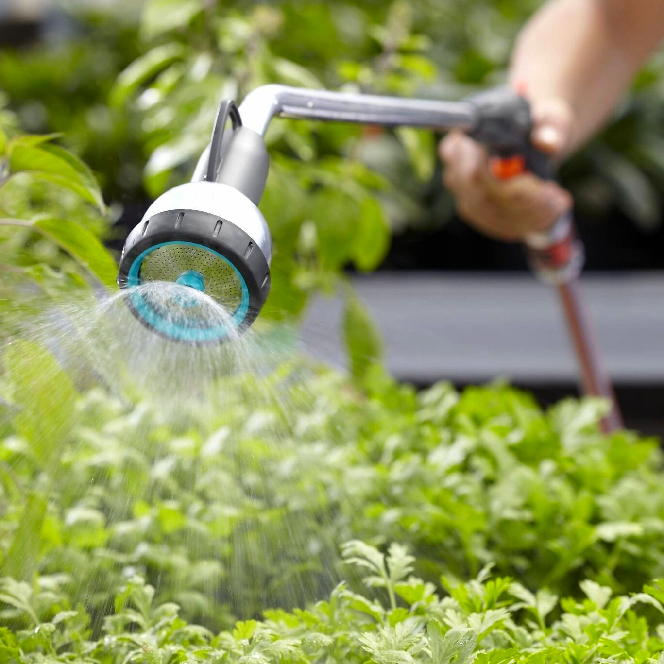 Штанга-распылитель для полива GARDENA Premium имеет длину 90 см и подходит для орошения больших площадей и цветочных горшков, а также для очистки в удаленных и труднодоступных местах.