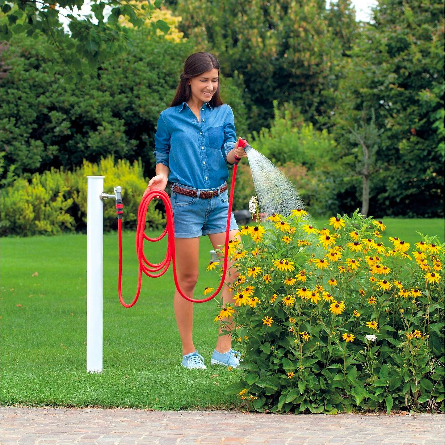 Шланг YOYO by FITT UP универсальный растягивающийся длиной 25 м продается в комплекте с фитингами, многоструйным разбрызгивателем и приспособлением для компактного хранения. При давлении воды 3 Бар шланг увеличивается вдвое, а после использования возвращается к исходному размеру.
